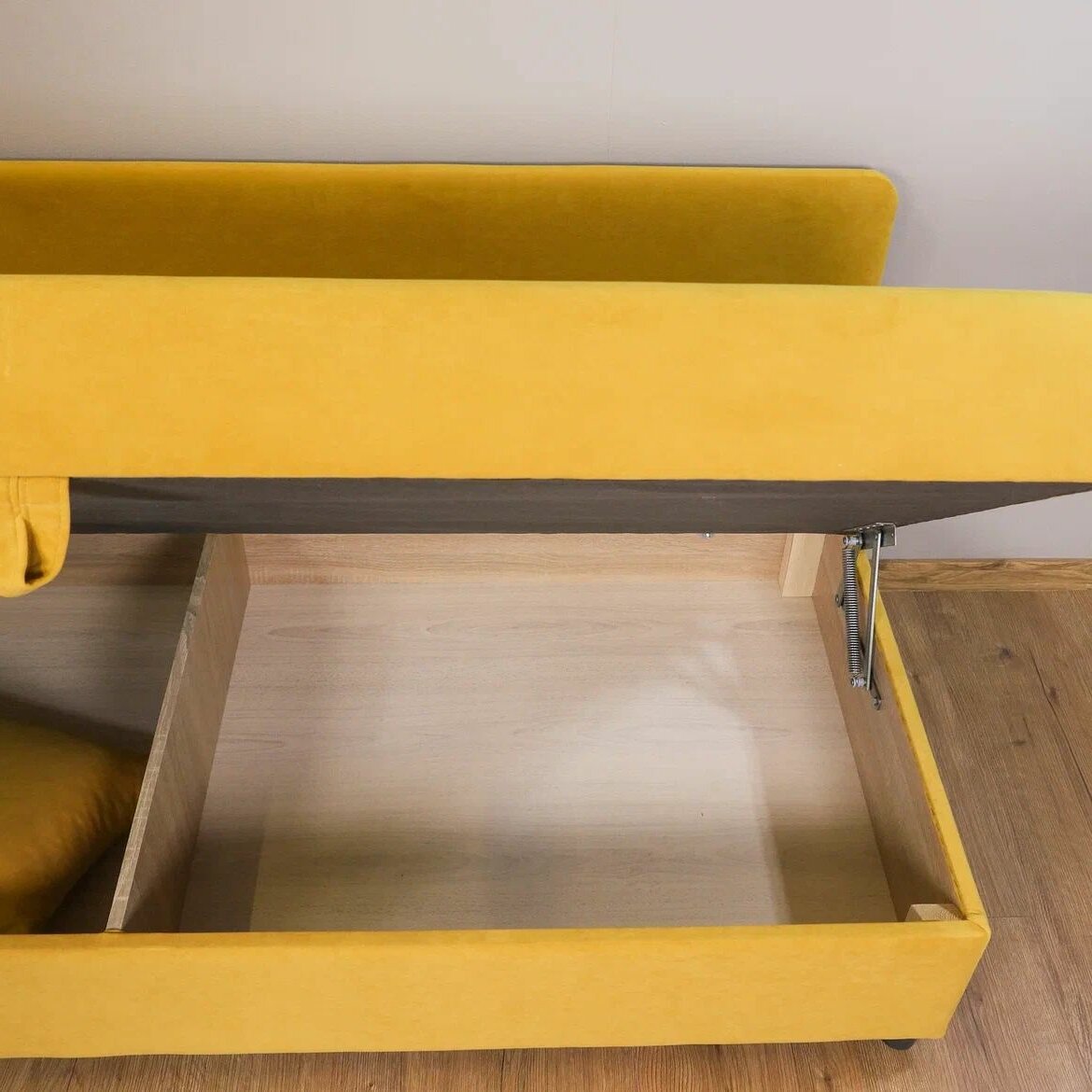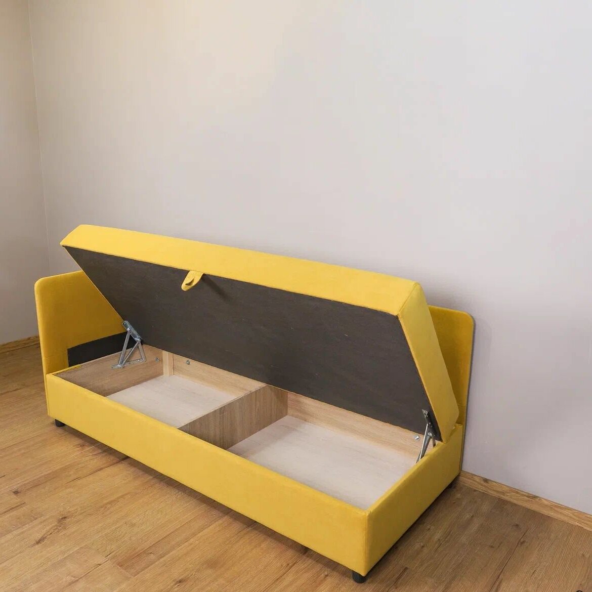 Диван-кровать, тахта с ящиком для белья , цвет желтый, правый угол