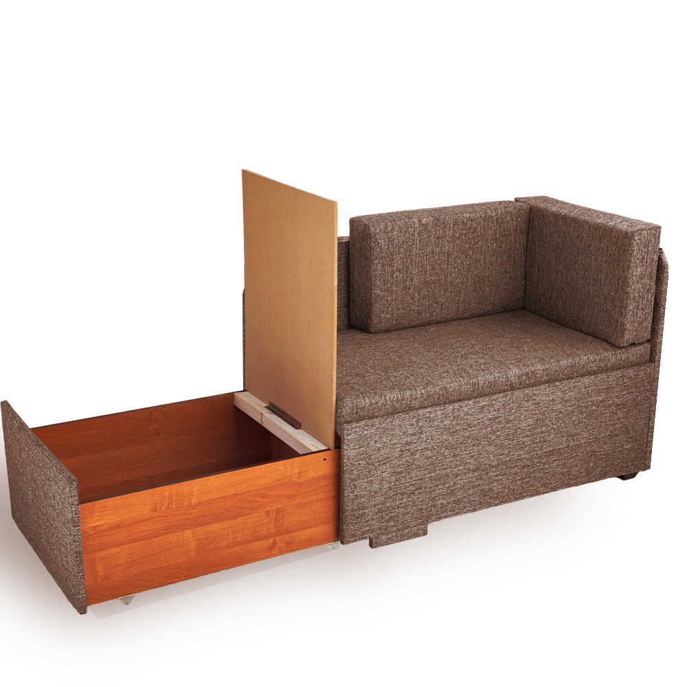 Диван кушетка "Лора" со спальным местом и ящиком светло-коричневый правый