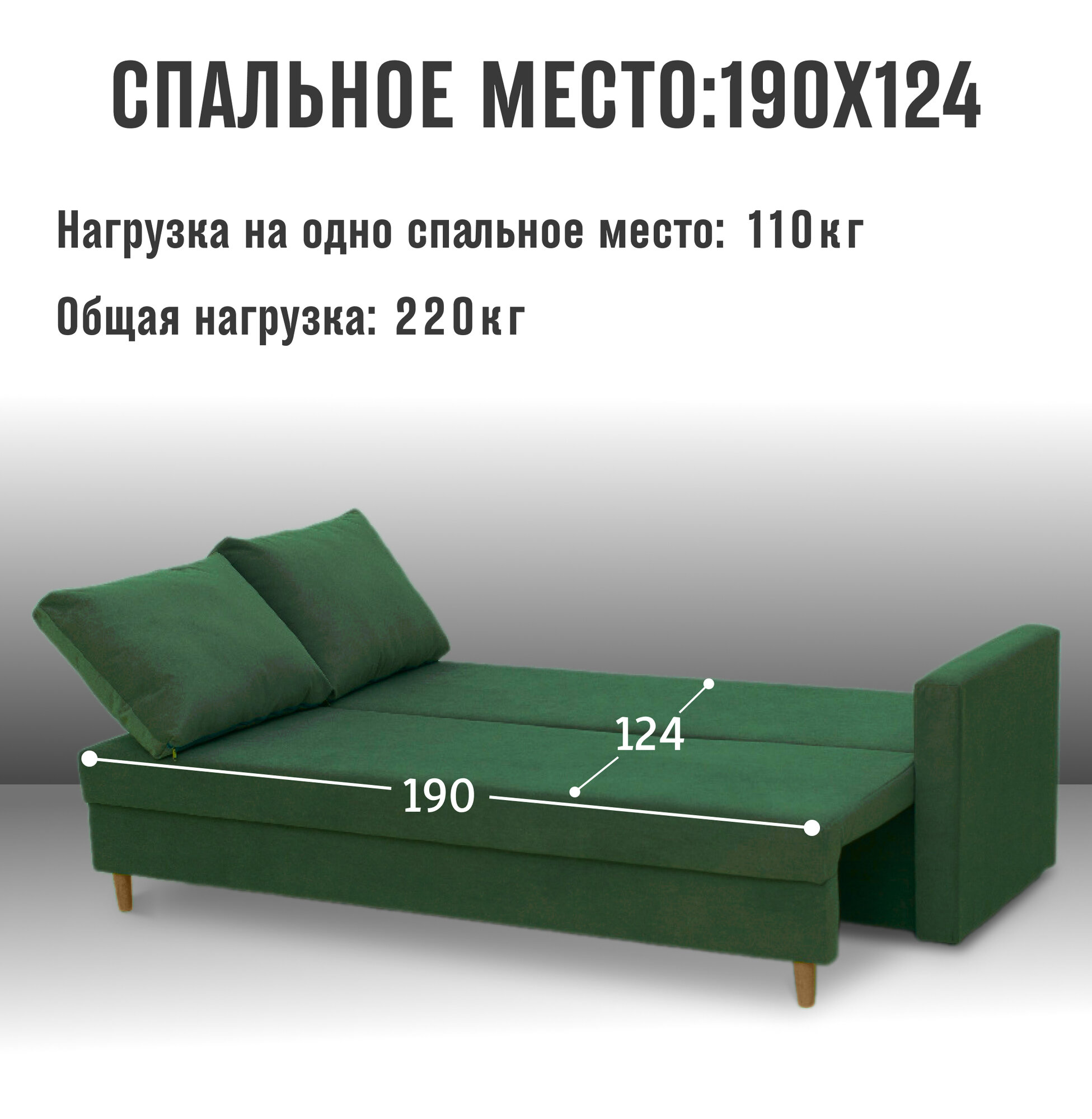 Купить Диван - кровать прямой Ванкувер Лайт, механизм еврокнижка, 212 х 77 х 77 см, Зеленый