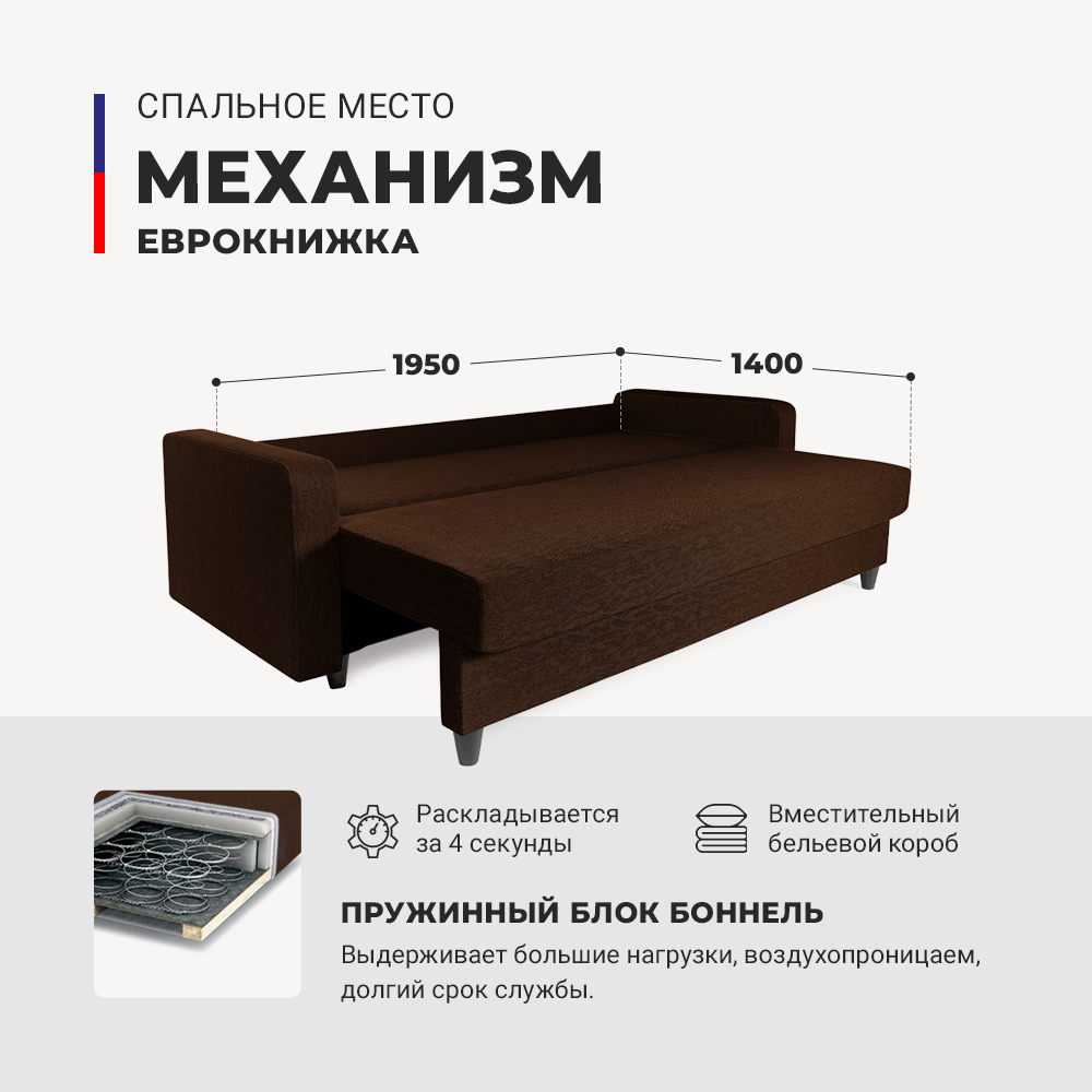 | Особенности | раскладная конструкция, с подлокотниками, съемные подушки, ящик для белья |
