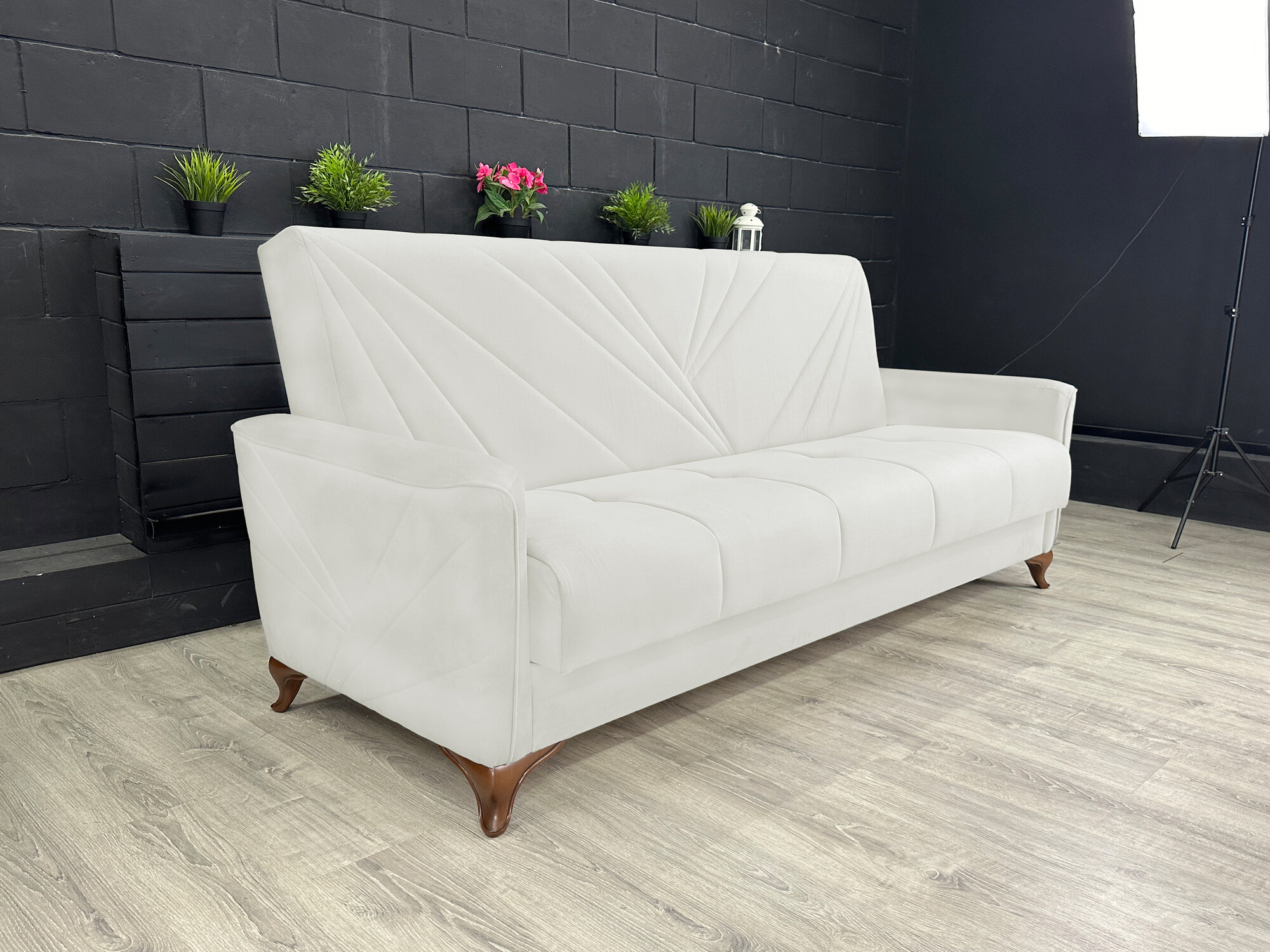 Диван-книжка Kёльн Велюр бежевый / ножки - слоновая кость Djivani