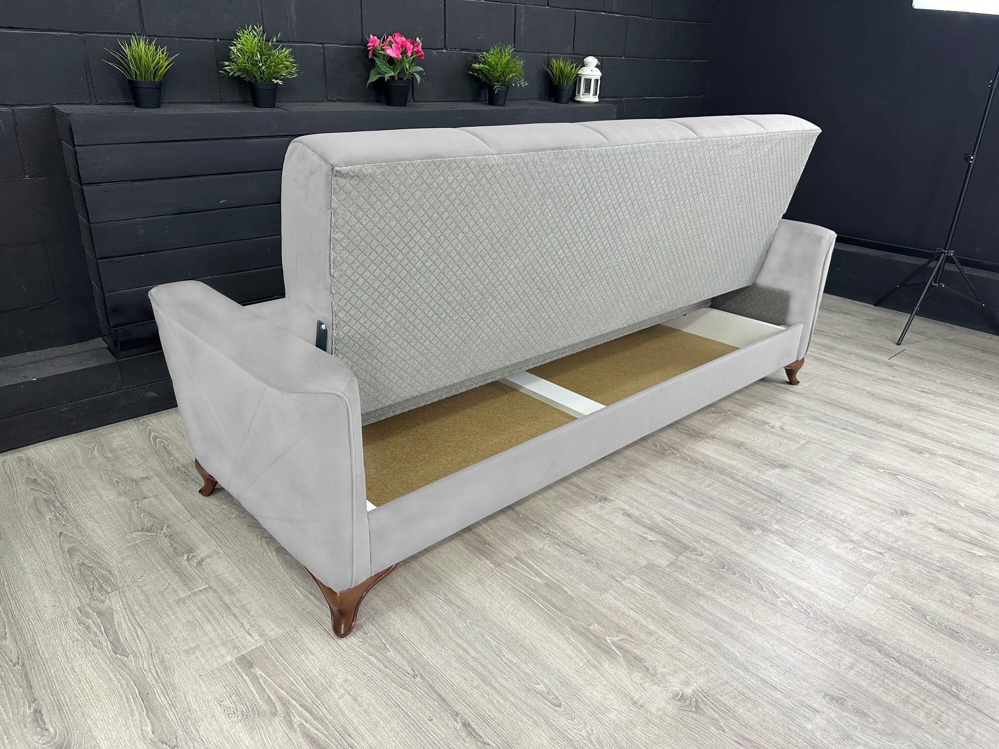 Купить Диван-книжка Kёльн Велюр светло-серый / ножки - коричневые Djivani