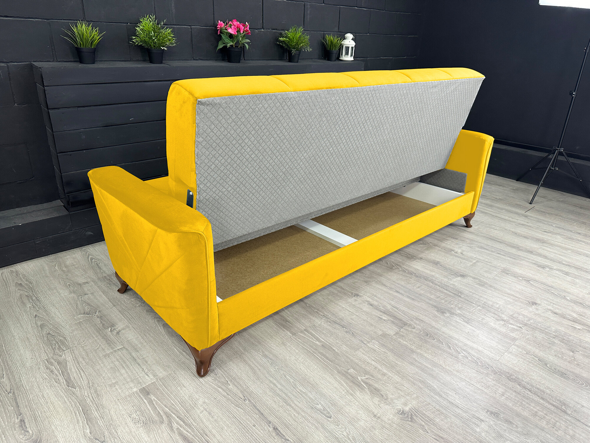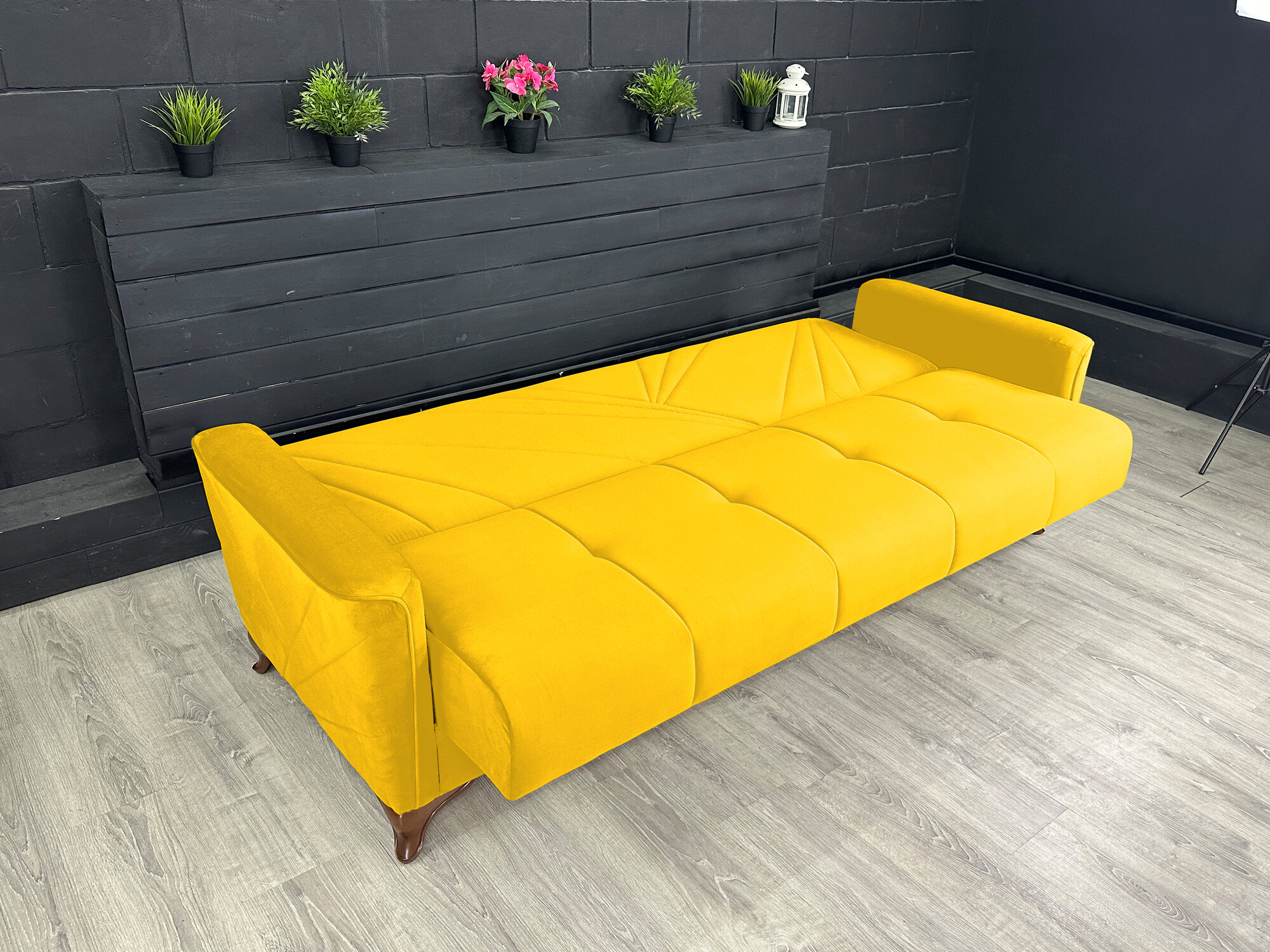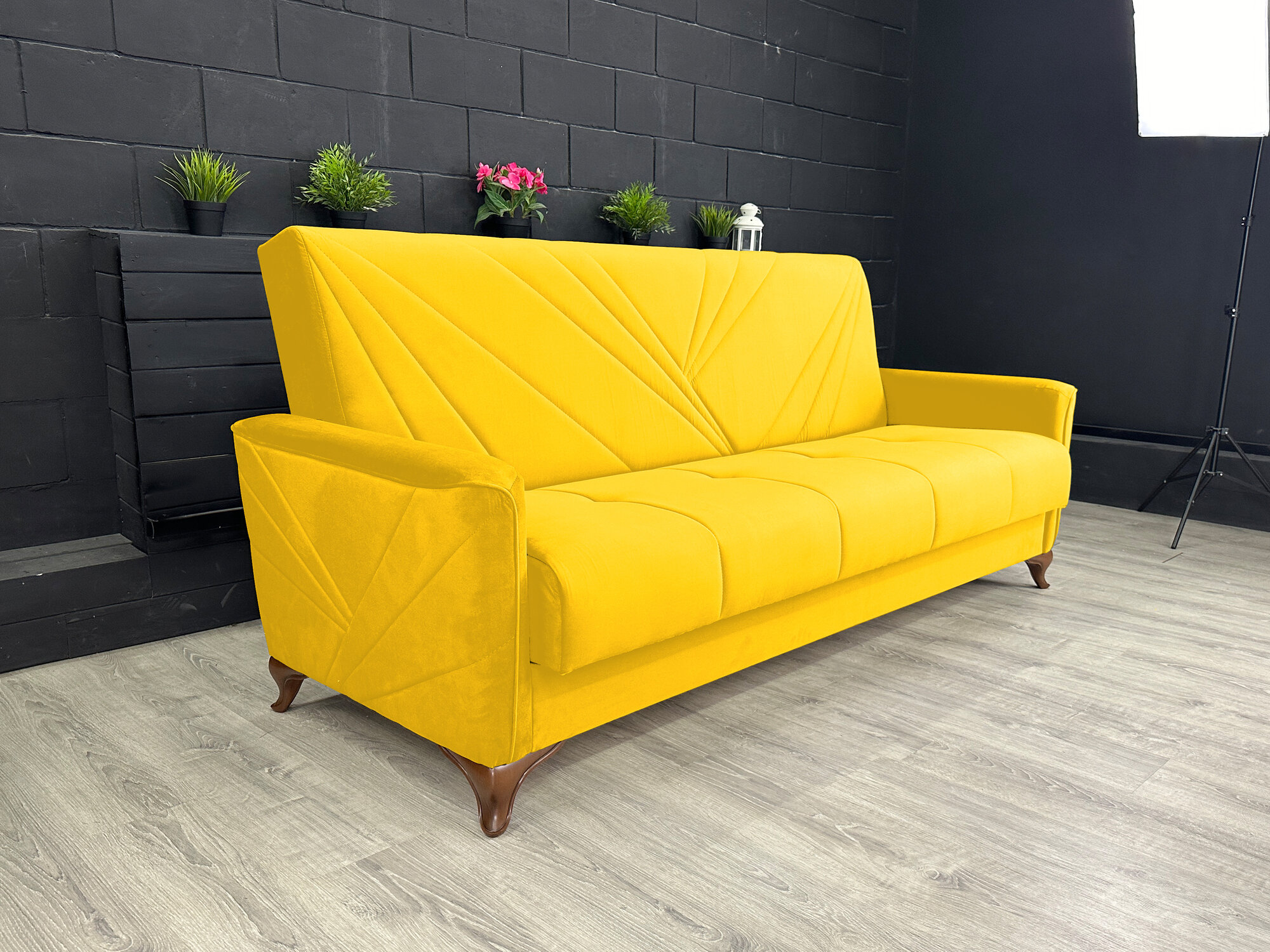 Купить Диван-книжка Kёльн Велюр жёлтый / ножки - коричневые Djivani