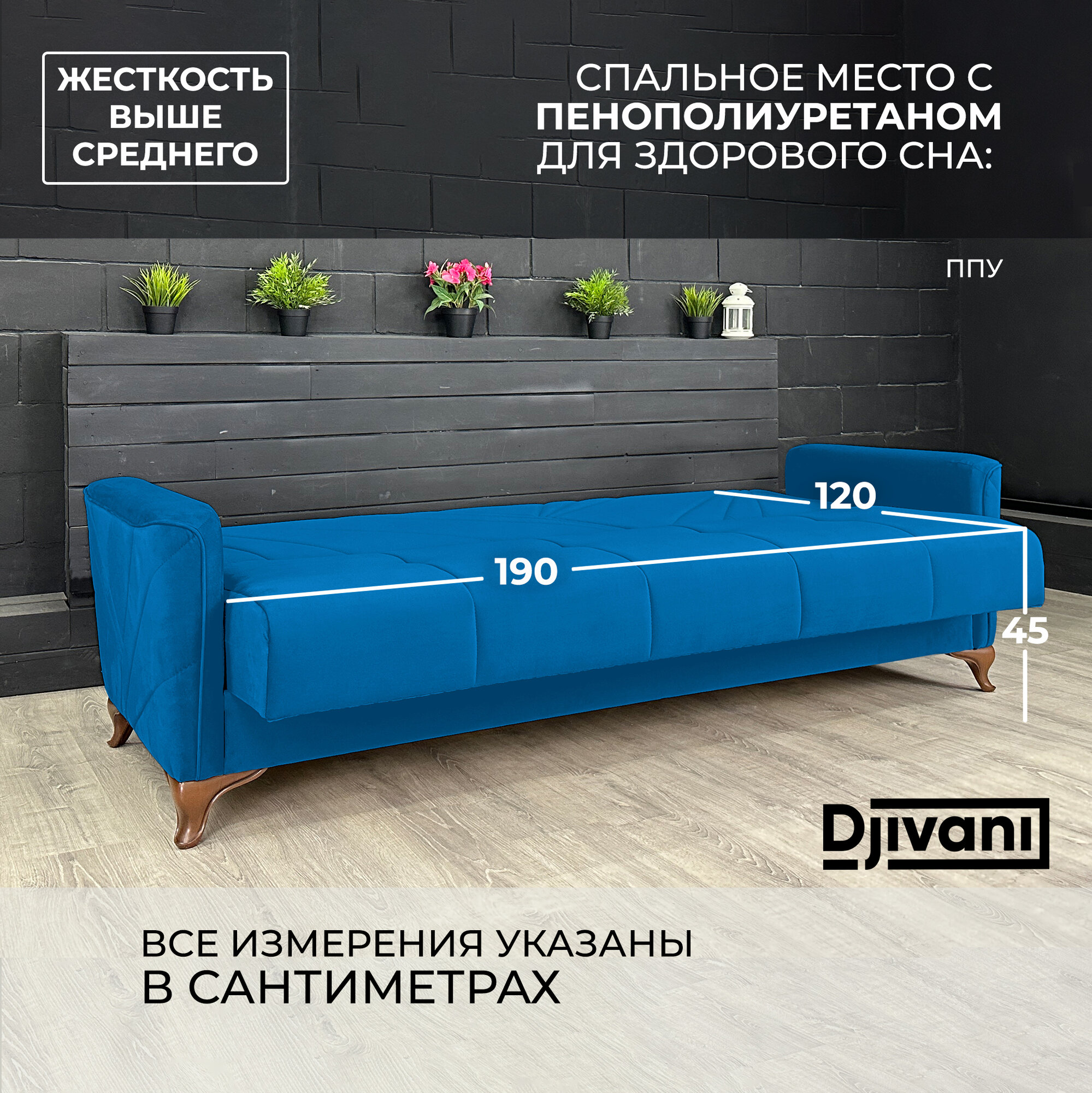 Купить Диван-книжка Kёльн Велюр синий / ножки - коричневые Djivani