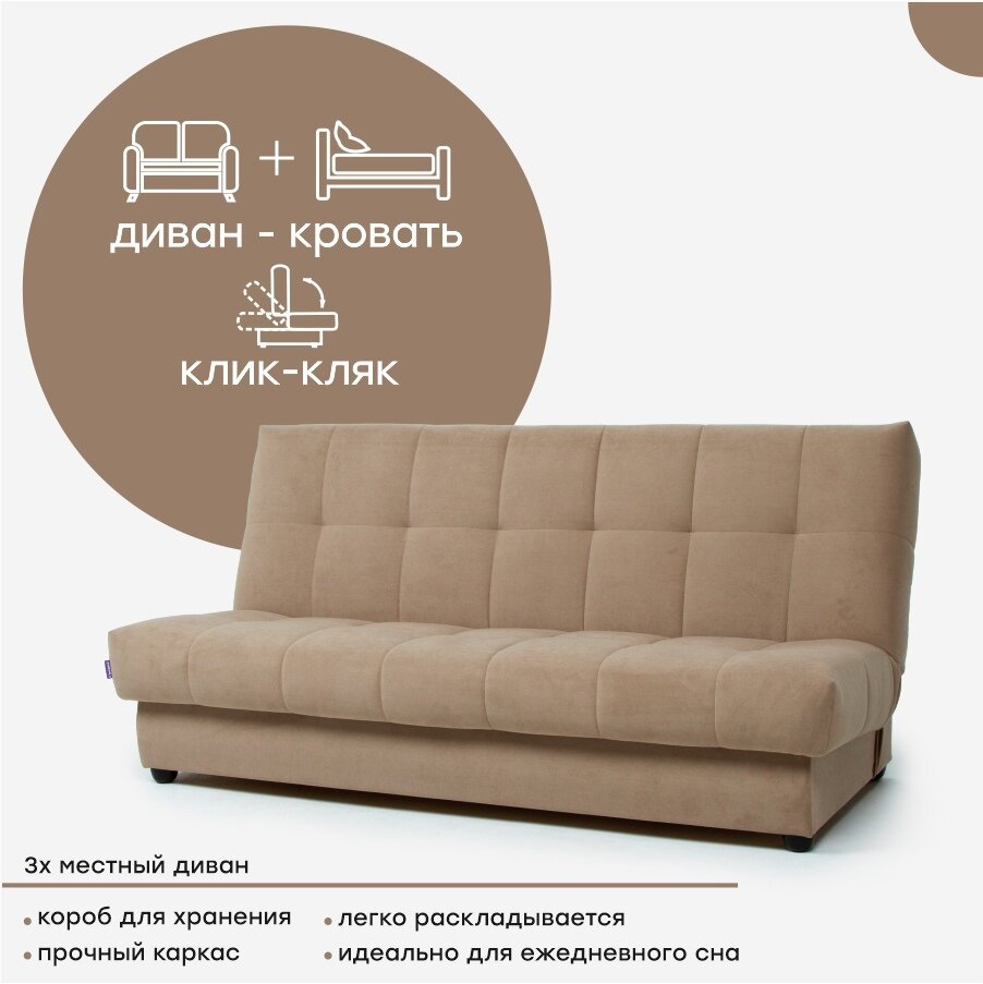 Диван кровать мягкий прямой с положением релакс Венера механизм клик-кляк 200 × 96 × 95 коричневый, Мебельная Фабрика Аврора