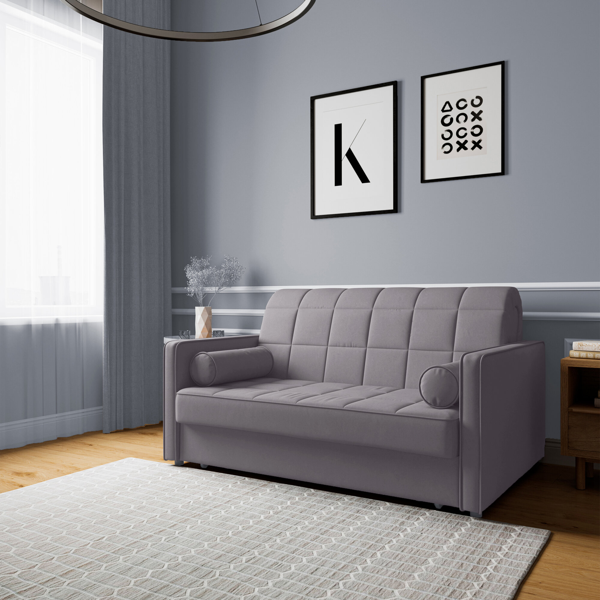 Кресло-кровать, Прямой диван HYPNOZ Palma, механизм Аккордеон, Светло-серый, 94х103х92 см