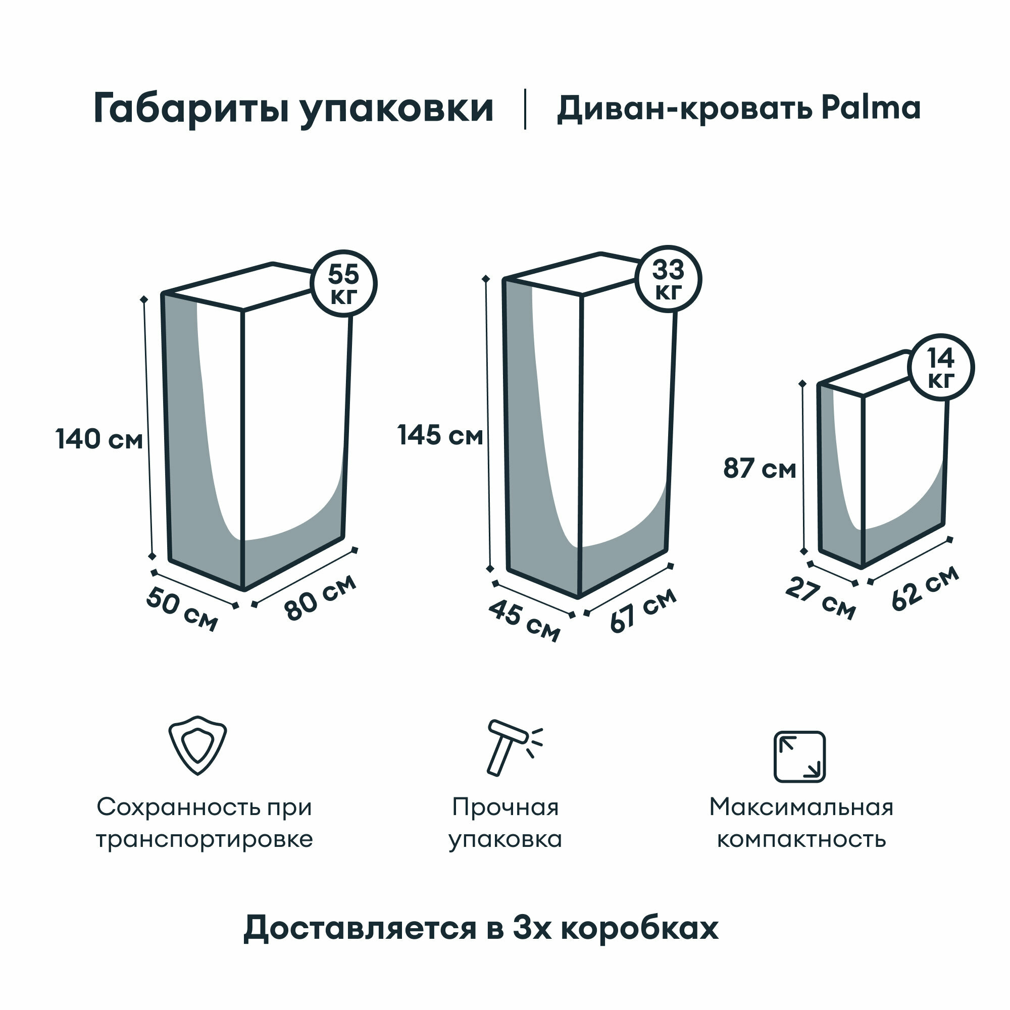 Диван-кровать, Прямой диван HYPNOZ Palma, механизм Аккордеон, 174х103х92 см, Тёмно-серый