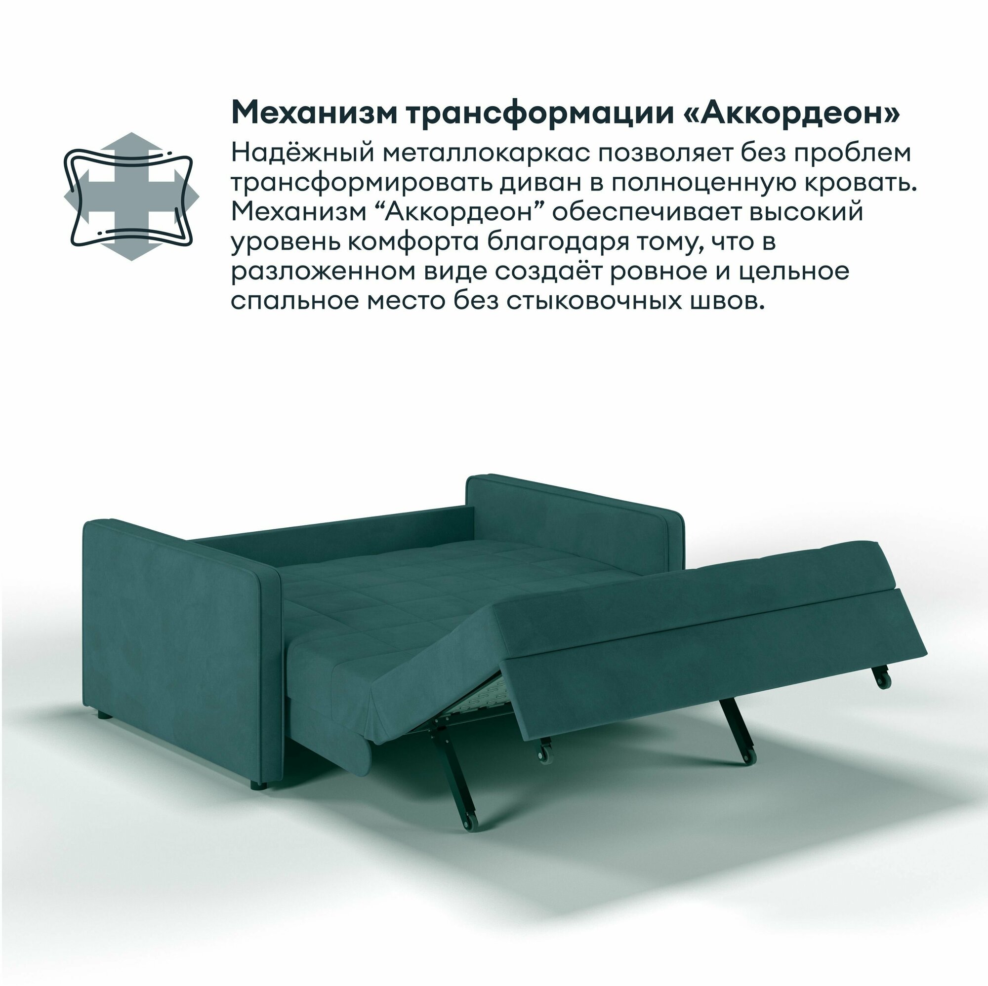 Кресло-кровать, Прямой диван HYPNOZ Palma, механизм Аккордеон, Зеленый, 94х103х92 см