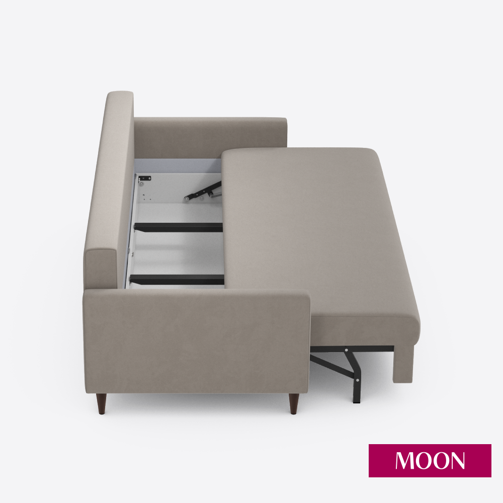 Диван-кровать раскладной пантограф (тик-так) MOON FAMILY 146, велюр бежевый, 223х94х85 см. Эксклюзивная пена UniqFoam