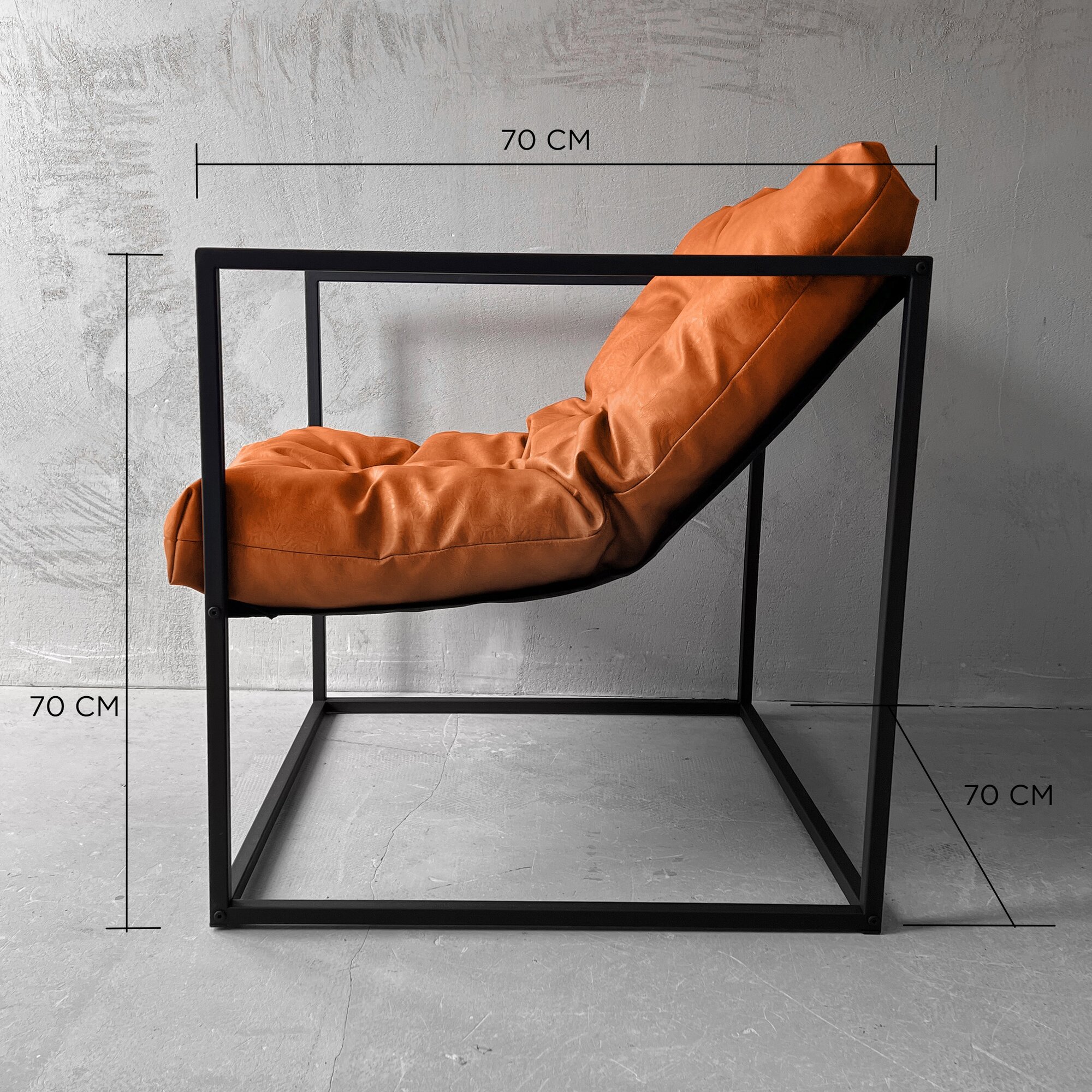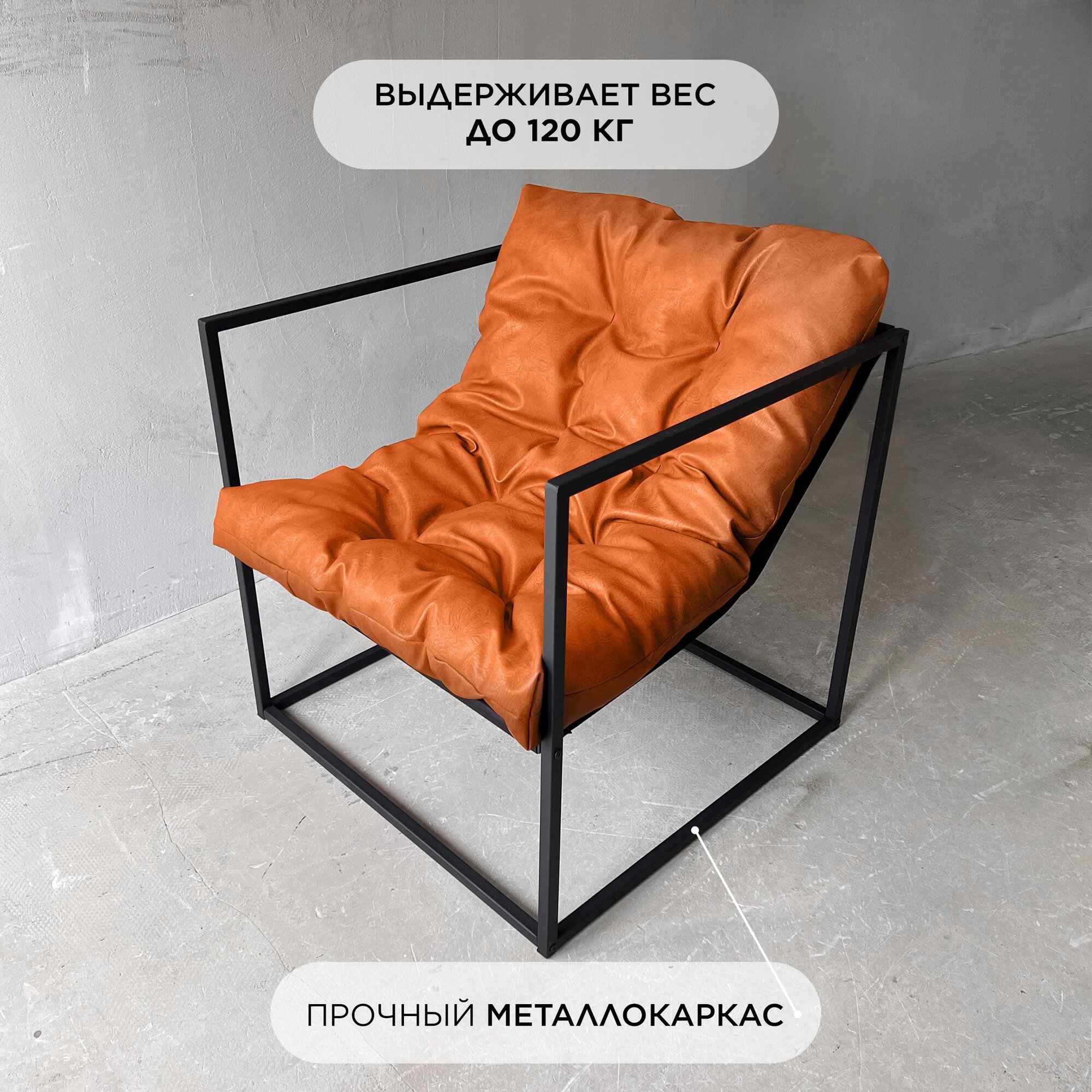 Кресло мягкое удобное для отдыха, уличное, на балкон, на веранду, в стиле лофт, минимализм, Лофтовик+ "Коричневый кожзам