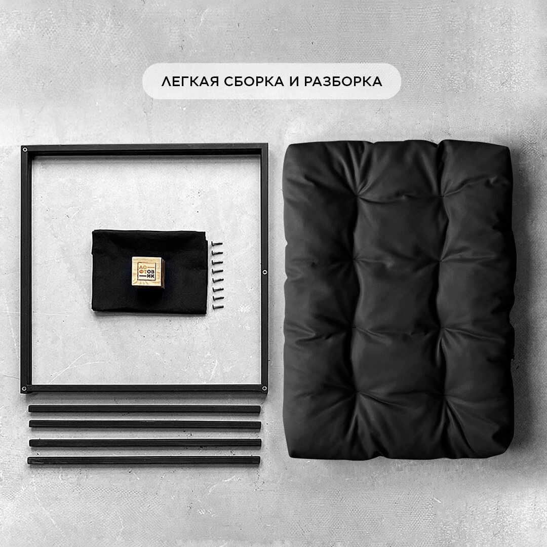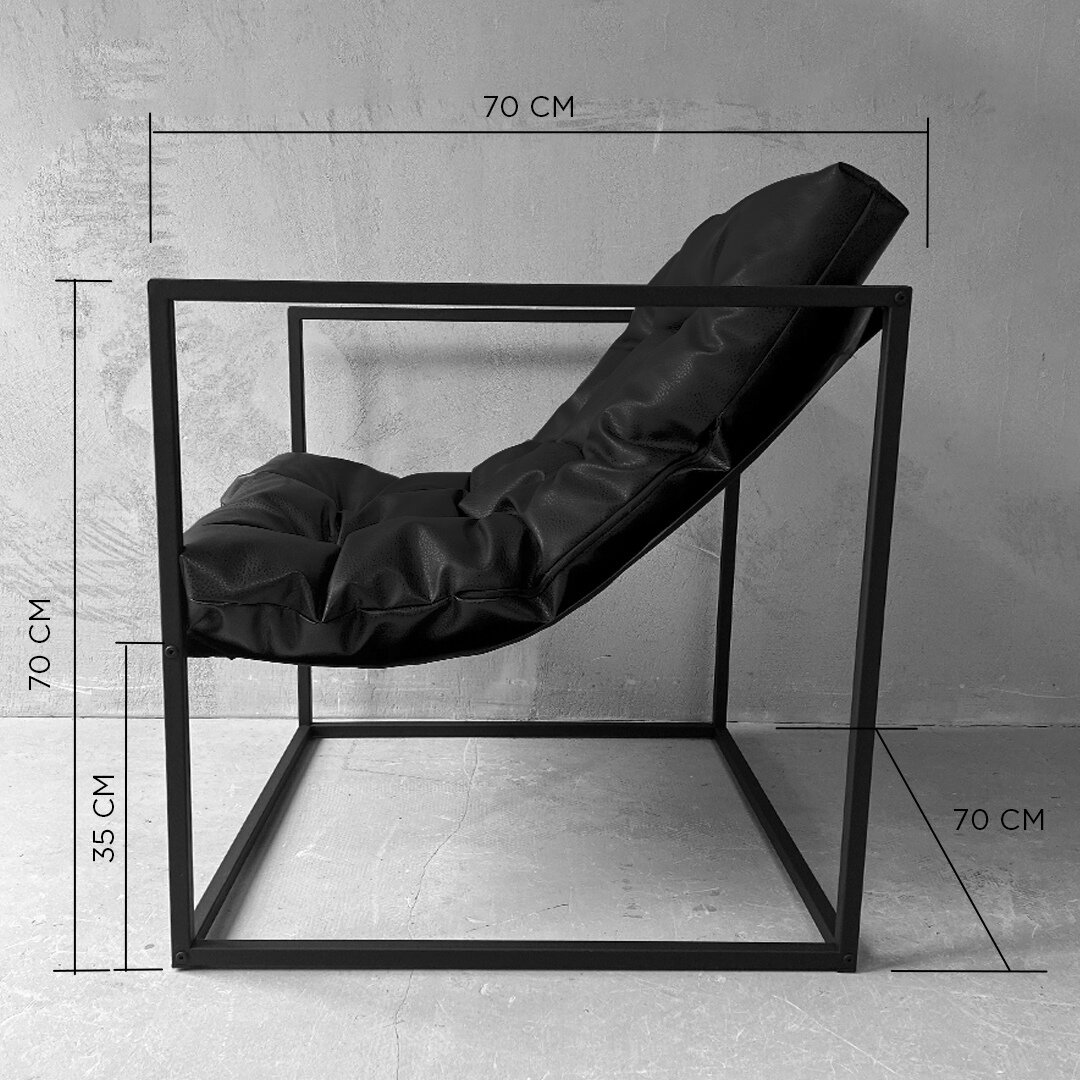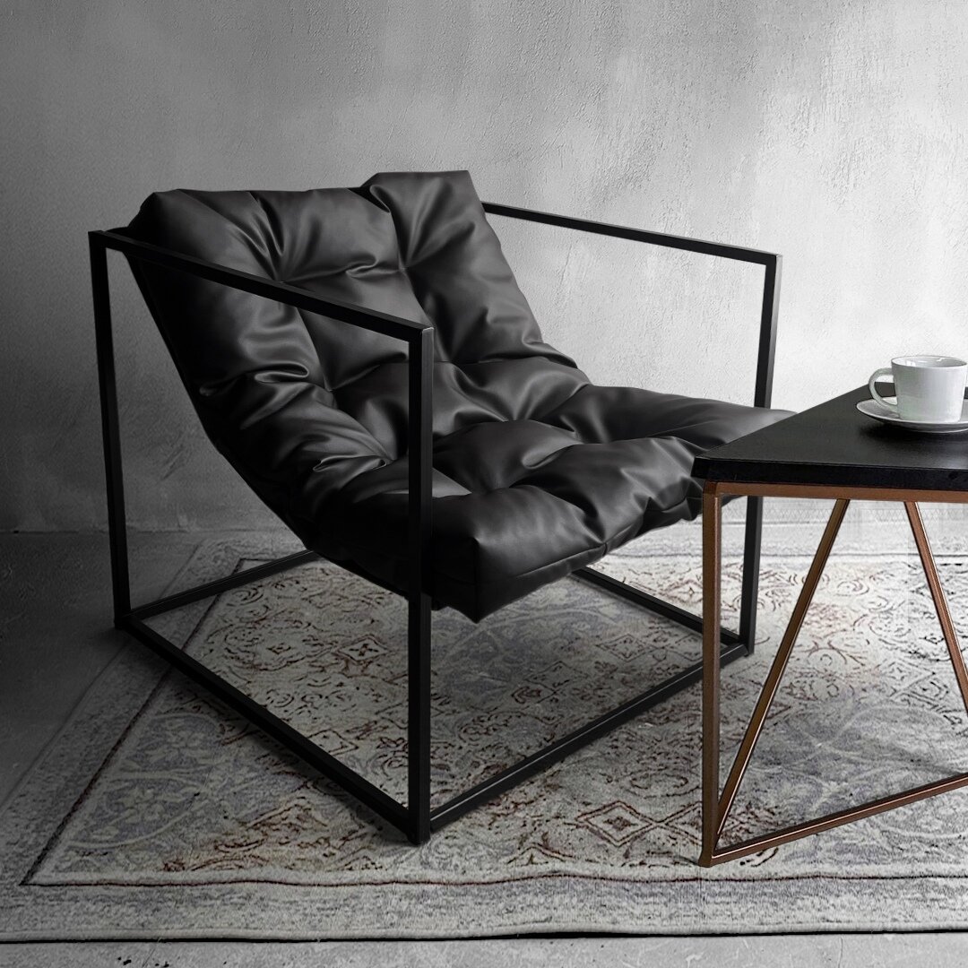 Кресло мягкое удобное для отдыха, уличное, на балкон, на веранду, в стиле лофт, минимализм, Лофтовик + черный велюр