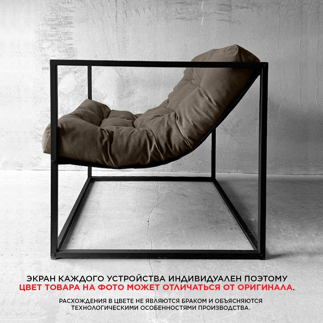 Кресло мягкое удобное для отдыха, уличное, на балкон, на веранду, в стиле лофт, минимализм, Лофтовик + Коричневый велюр