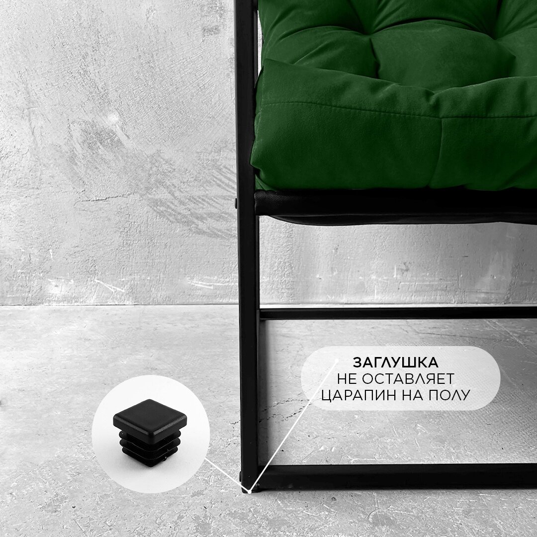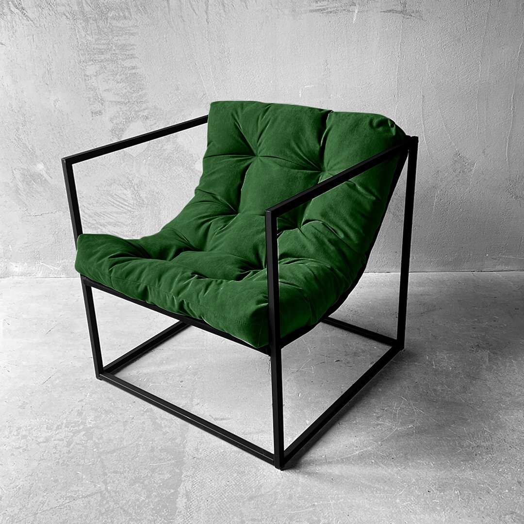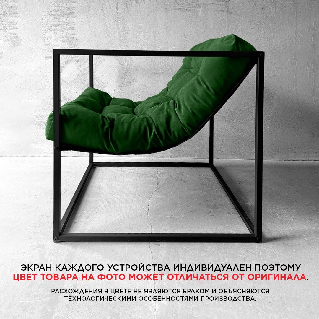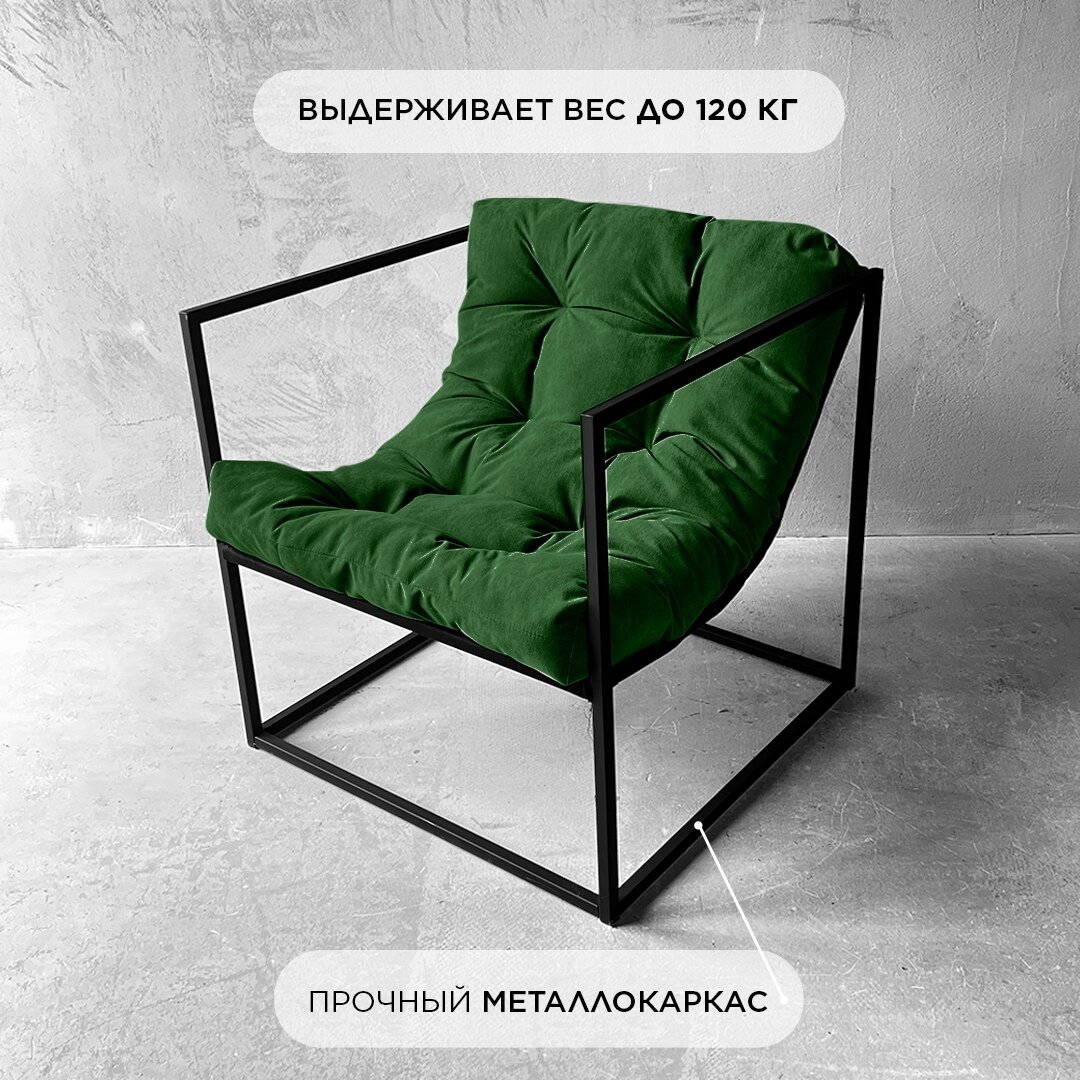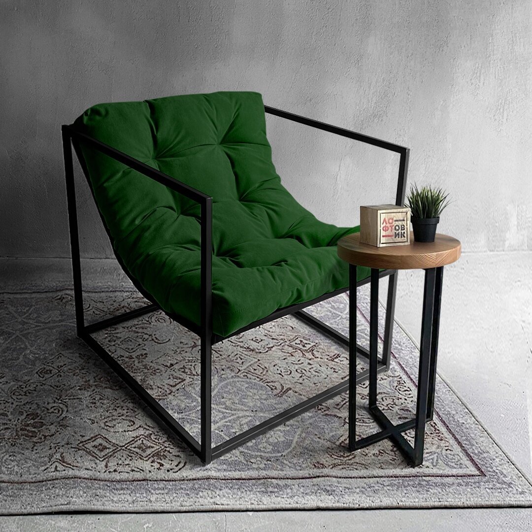 Кресло мягкое удобное для отдыха, уличное, на балкон, на веранду, в стиле лофт, минимализм, Лофтовик + Зеленый велюр