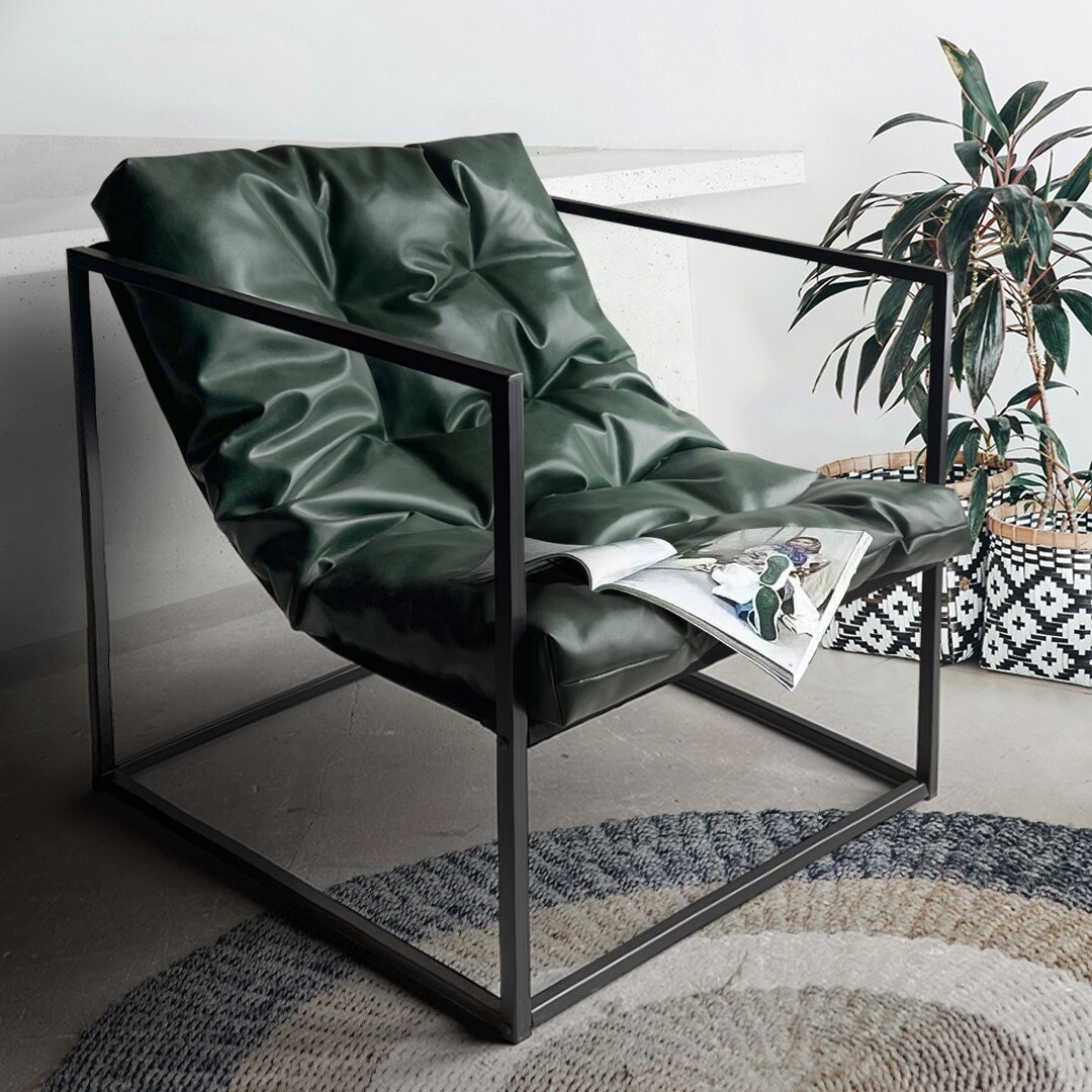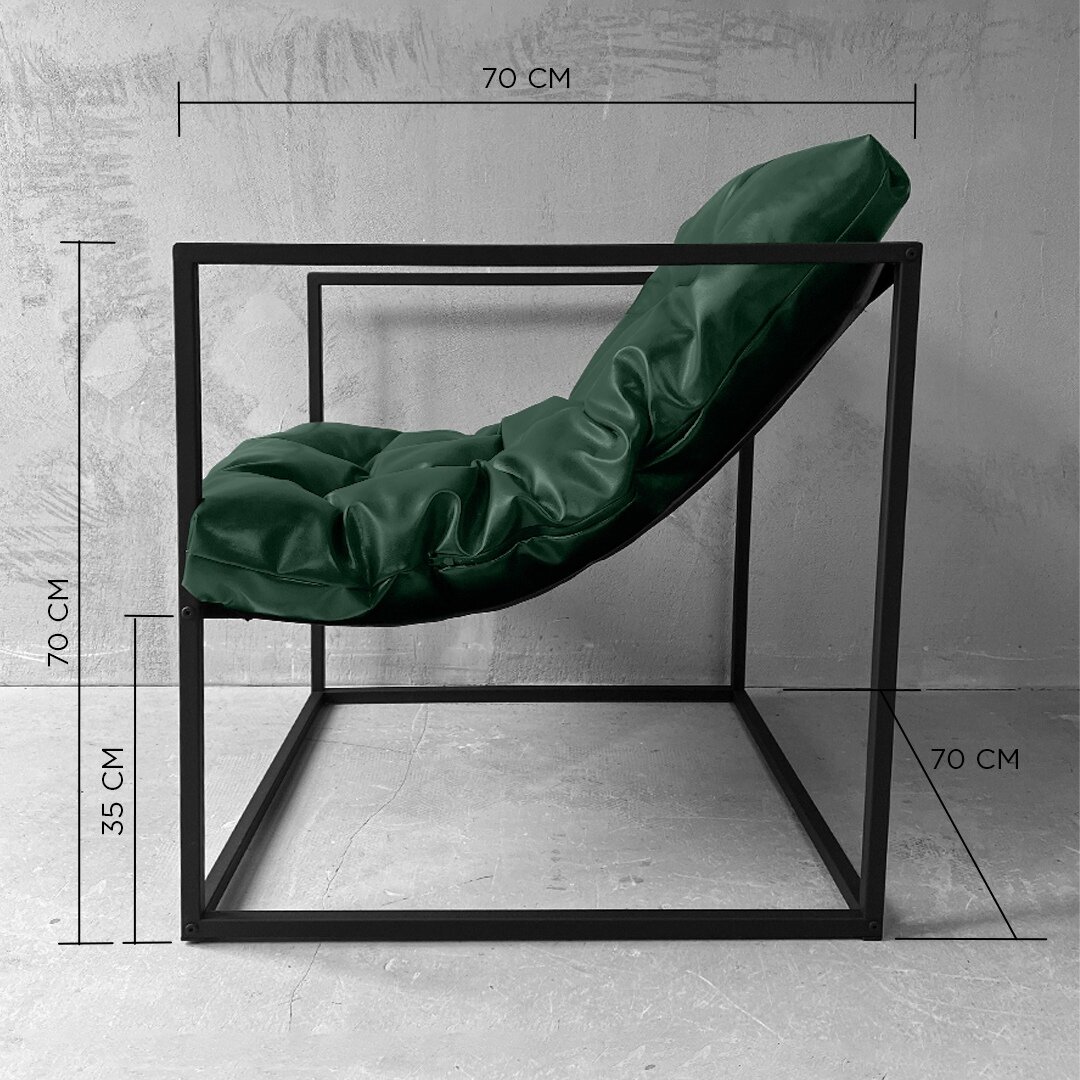 Кресло мягкое удобное для отдыха, уличное, на балкон, на веранду, в стиле лофт, минимализм, Лофтовик + Зеленый велюр