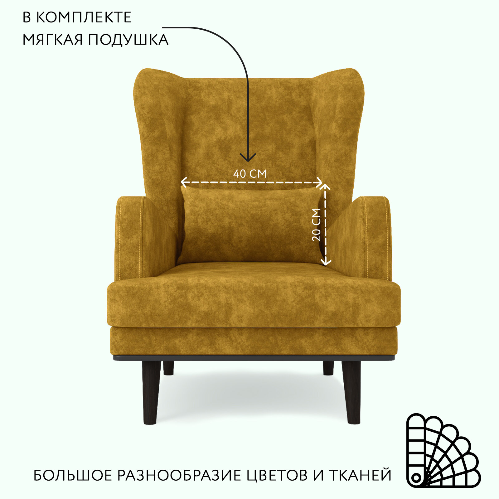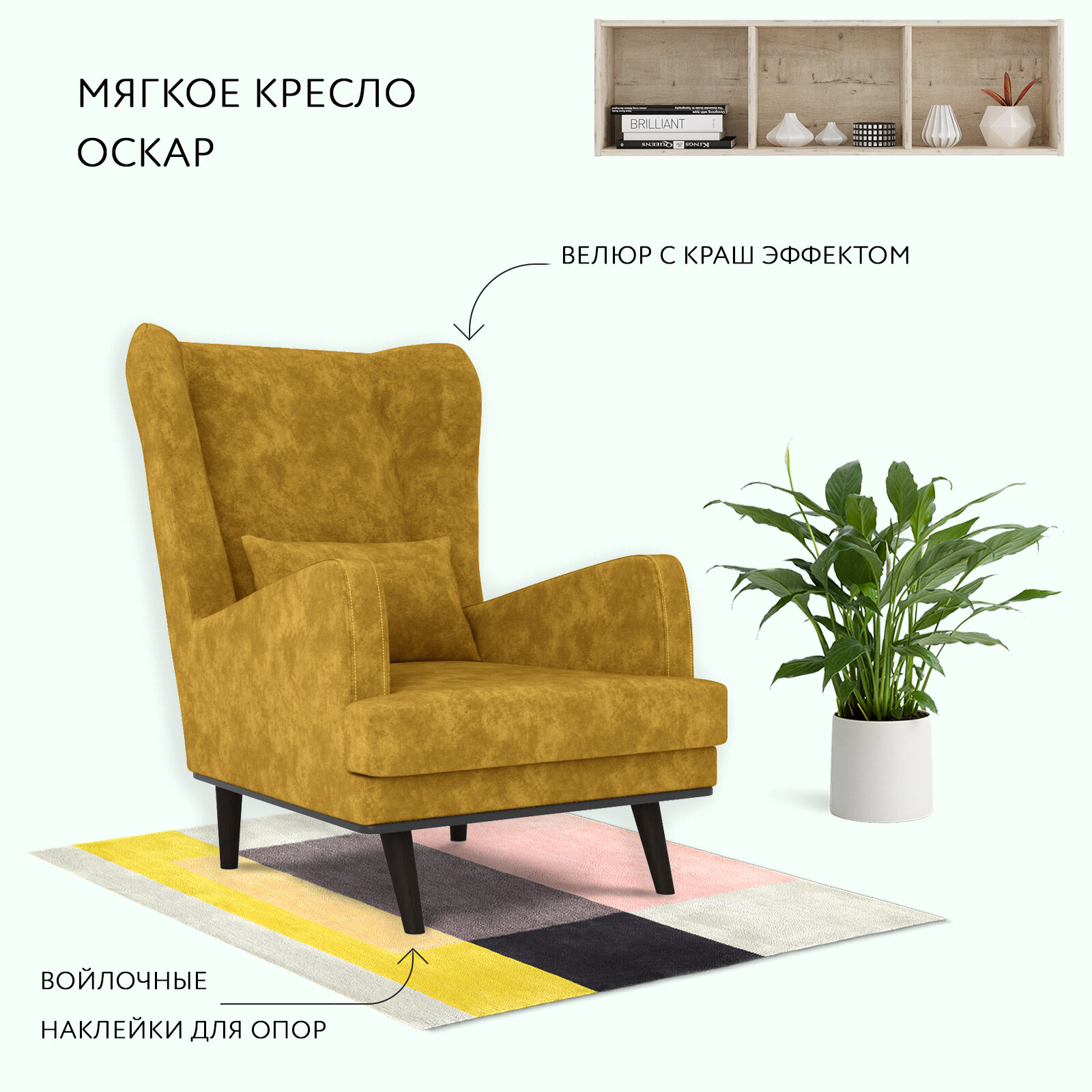 Кресло ОБСТАНОВКА. РУ Вегас мягкое с ушами, для дома, велюр Velour 19