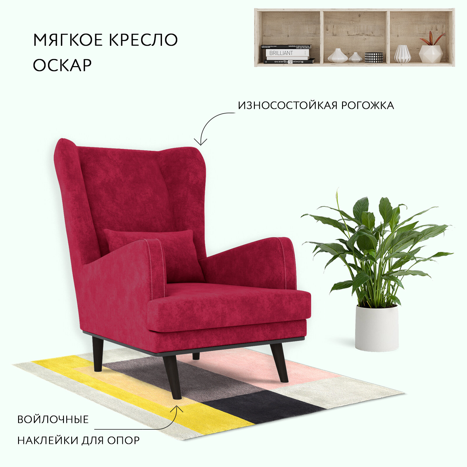 Кресло ОБСТАНОВКА. РУ Вегас мягкое с ушами, для дома, велюр Velour 18