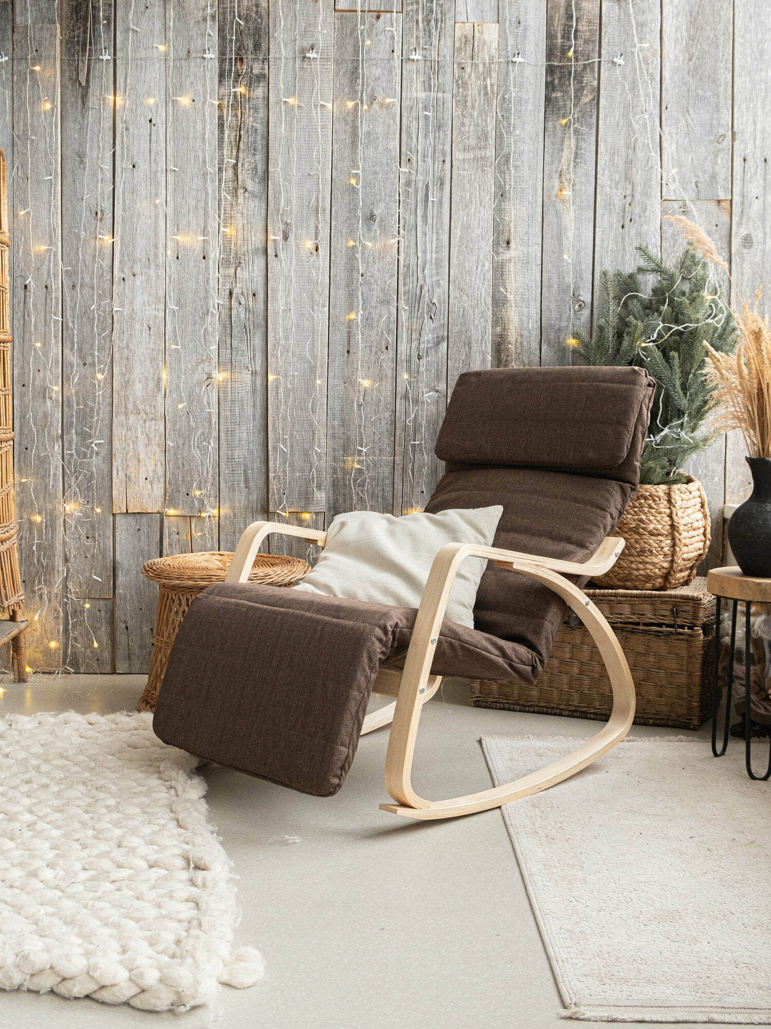 Купить Кресло-качалка, коричневое, с раскладной подставкой для ног