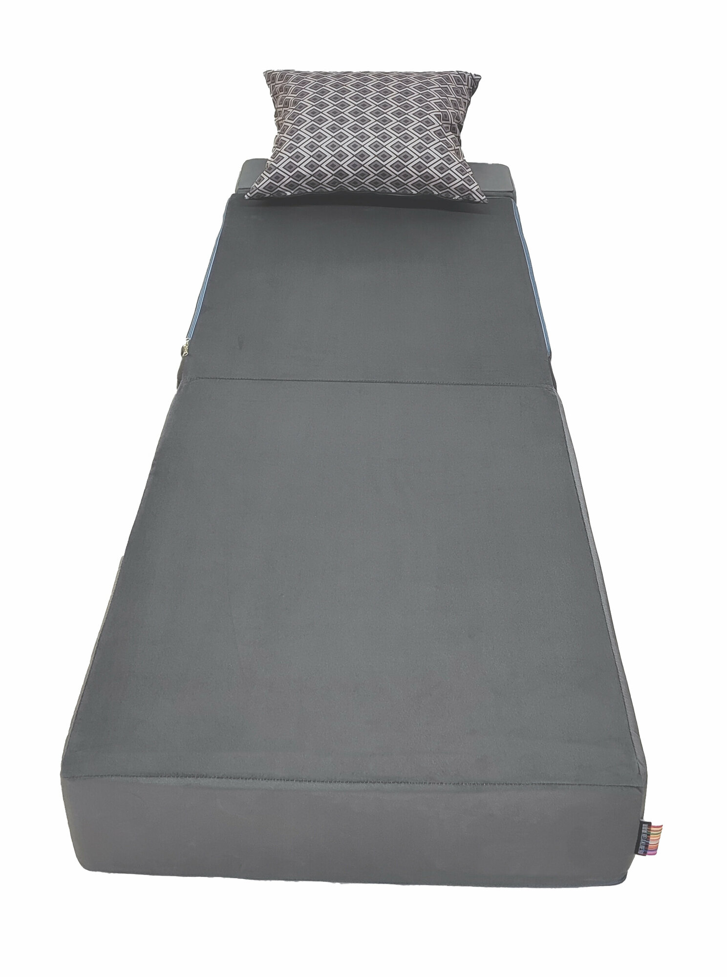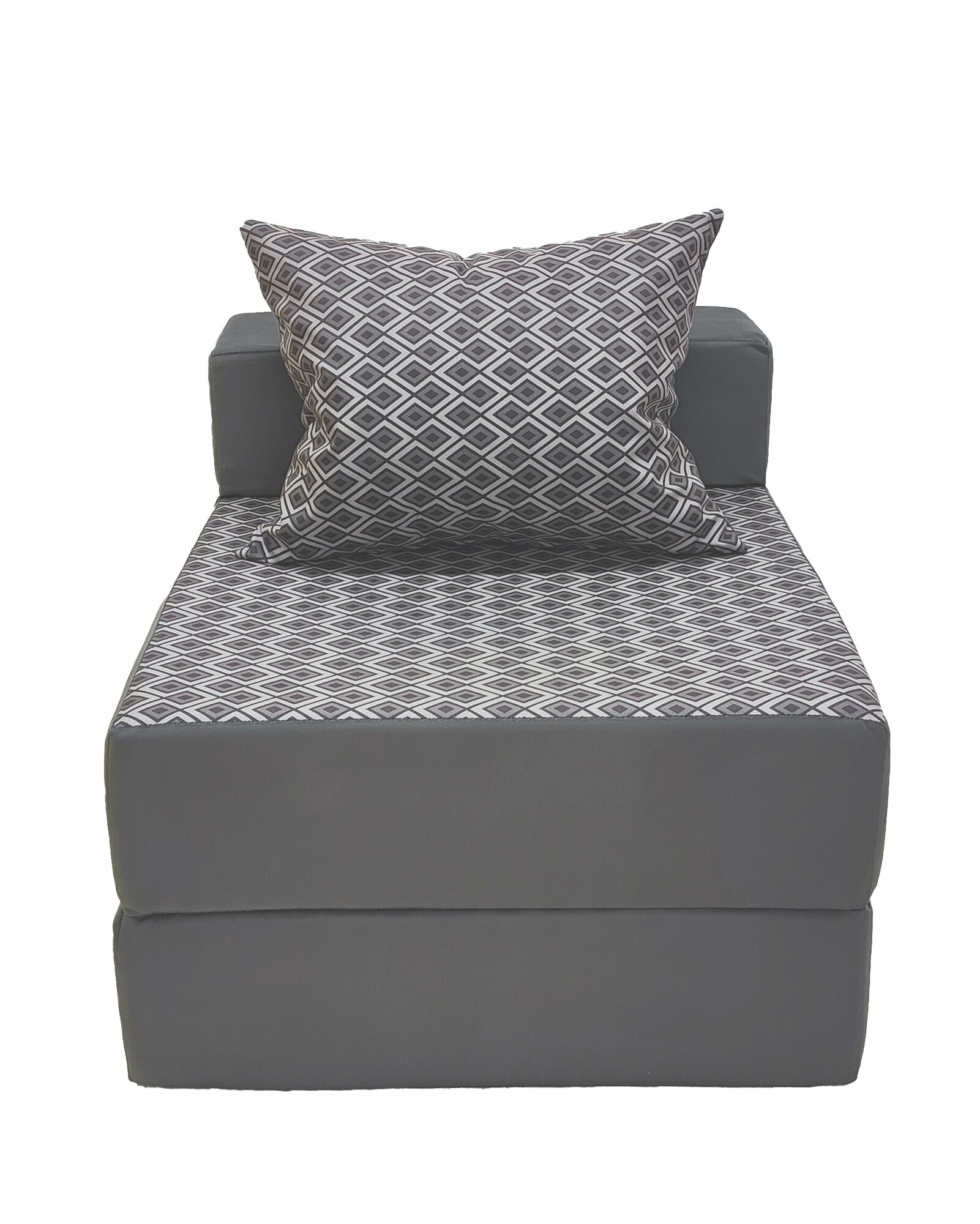 Купить Бескаркасное раскладное кресло- кровать Relaxline Квадро принт раскладной матрас , велюр серый