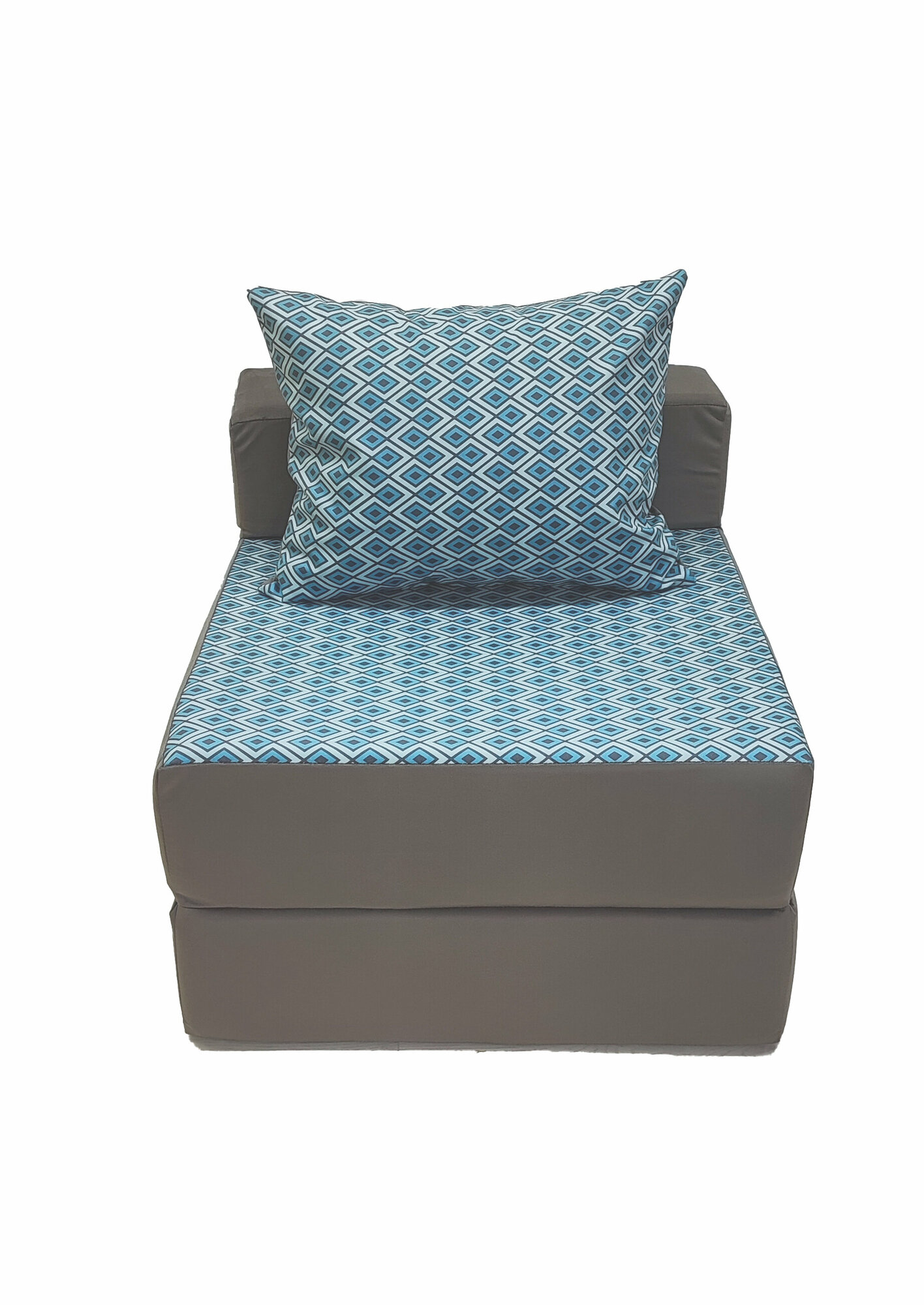 Бескаркасное раскладное кресло- кровать Relaxline Квадро принт раскладной матрас , велюр серый