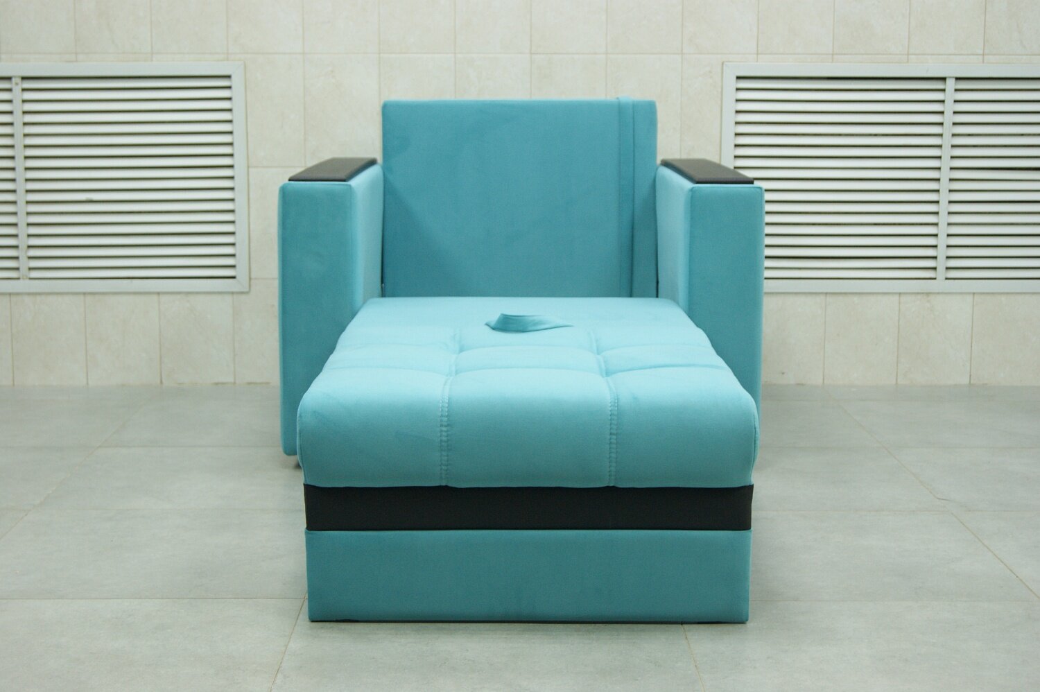 Кресло-кровать Атланта голубой велюр, 90х91х88 см, с ящиком для белья