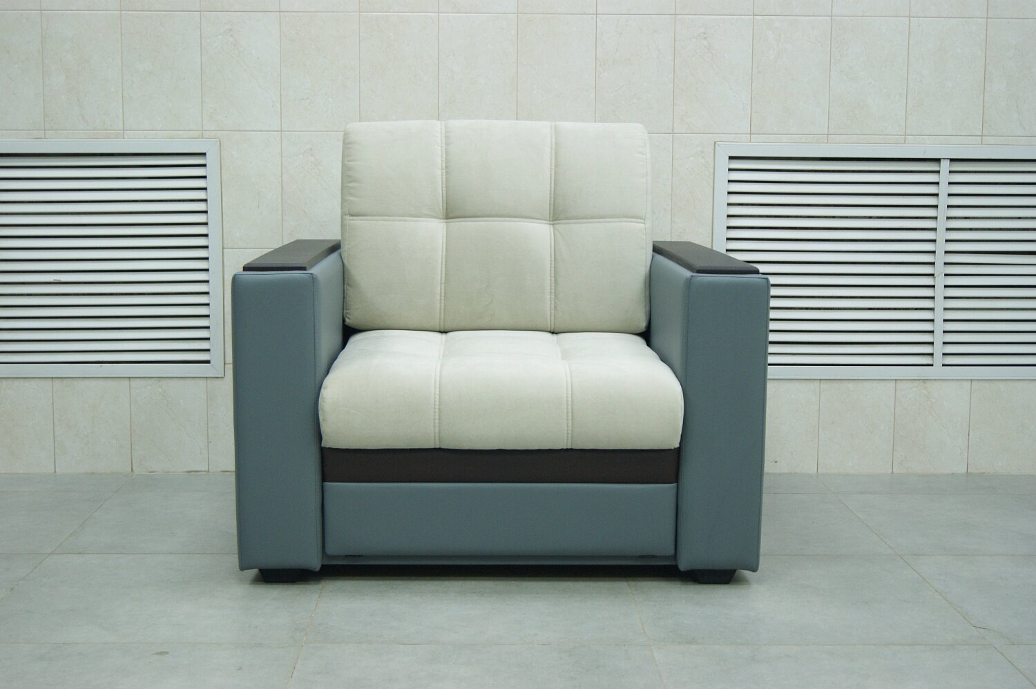 Кресло-кровать Атланта Бежево Серая, 90х91х88 см, с ящиком для белья