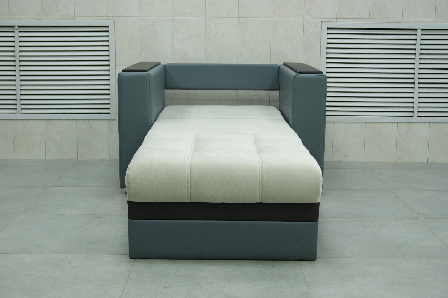 Кресло-кровать Атланта Серый Экокожа, 90х91х88 см, с ящиком для белья