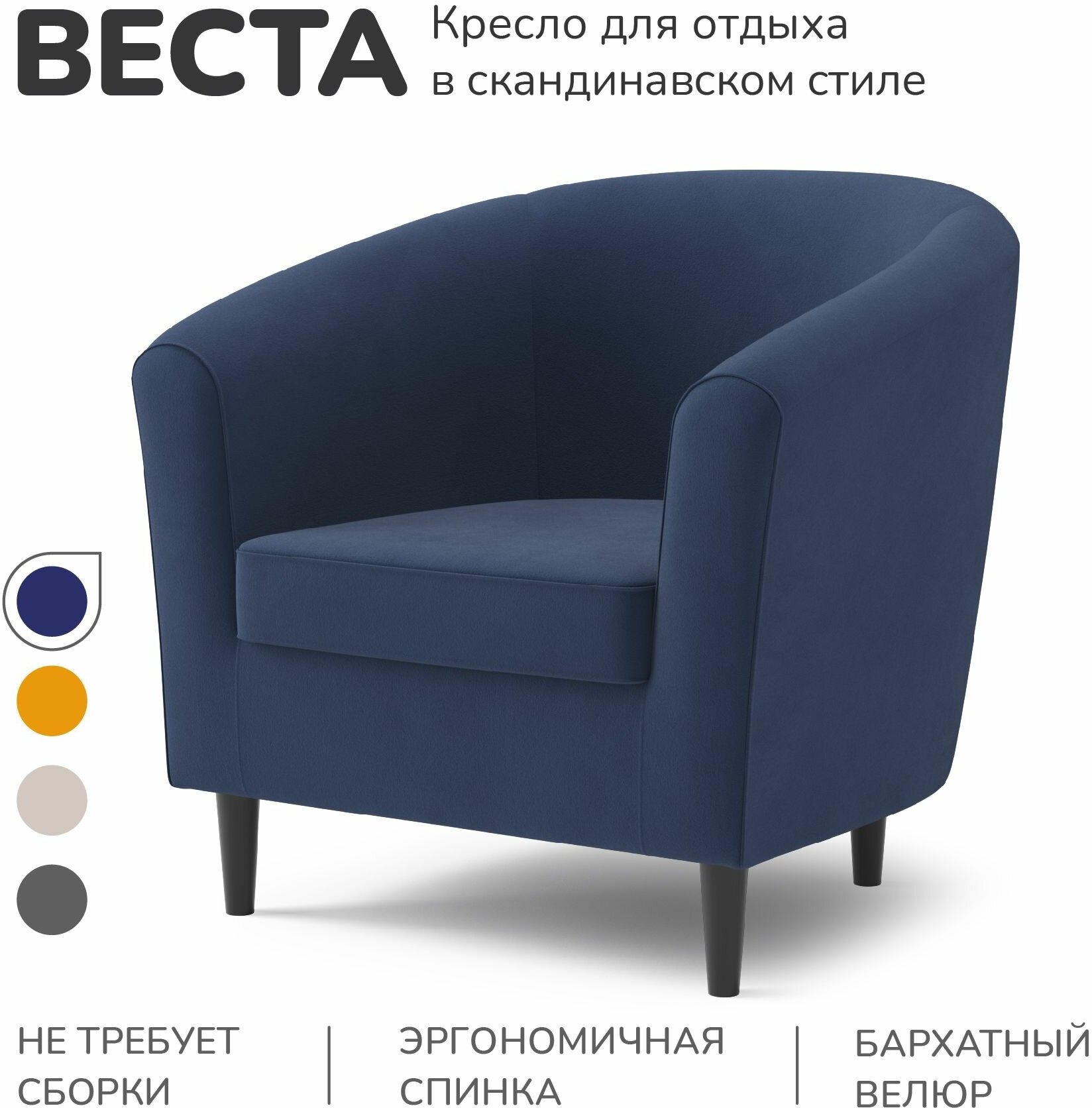 Кресло мягкое Salotti веста велюр Ultra синий интересное: