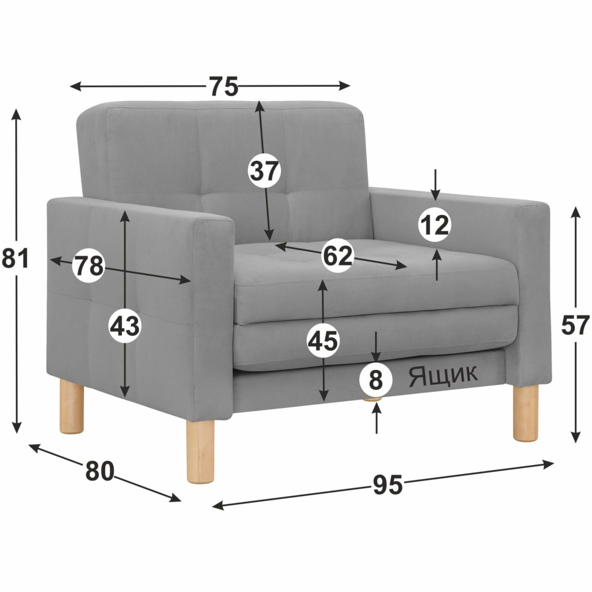 СохранитьКресло-кровать Монро, 95*80*81, спальное 75*194, велюр серый, Велутто 32 интересное: