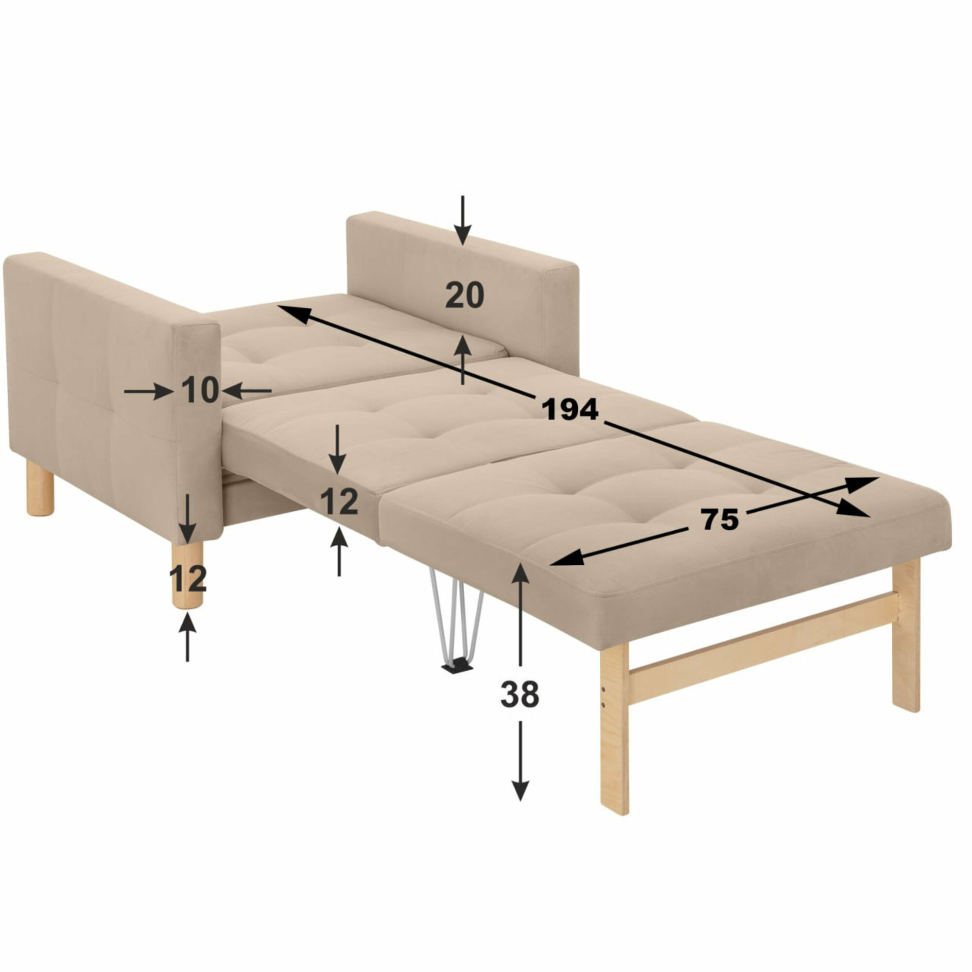 Купить Кресло-кровать Монро, 95*80*81, спальное 75*194, велюр бежевый, Велутто 07