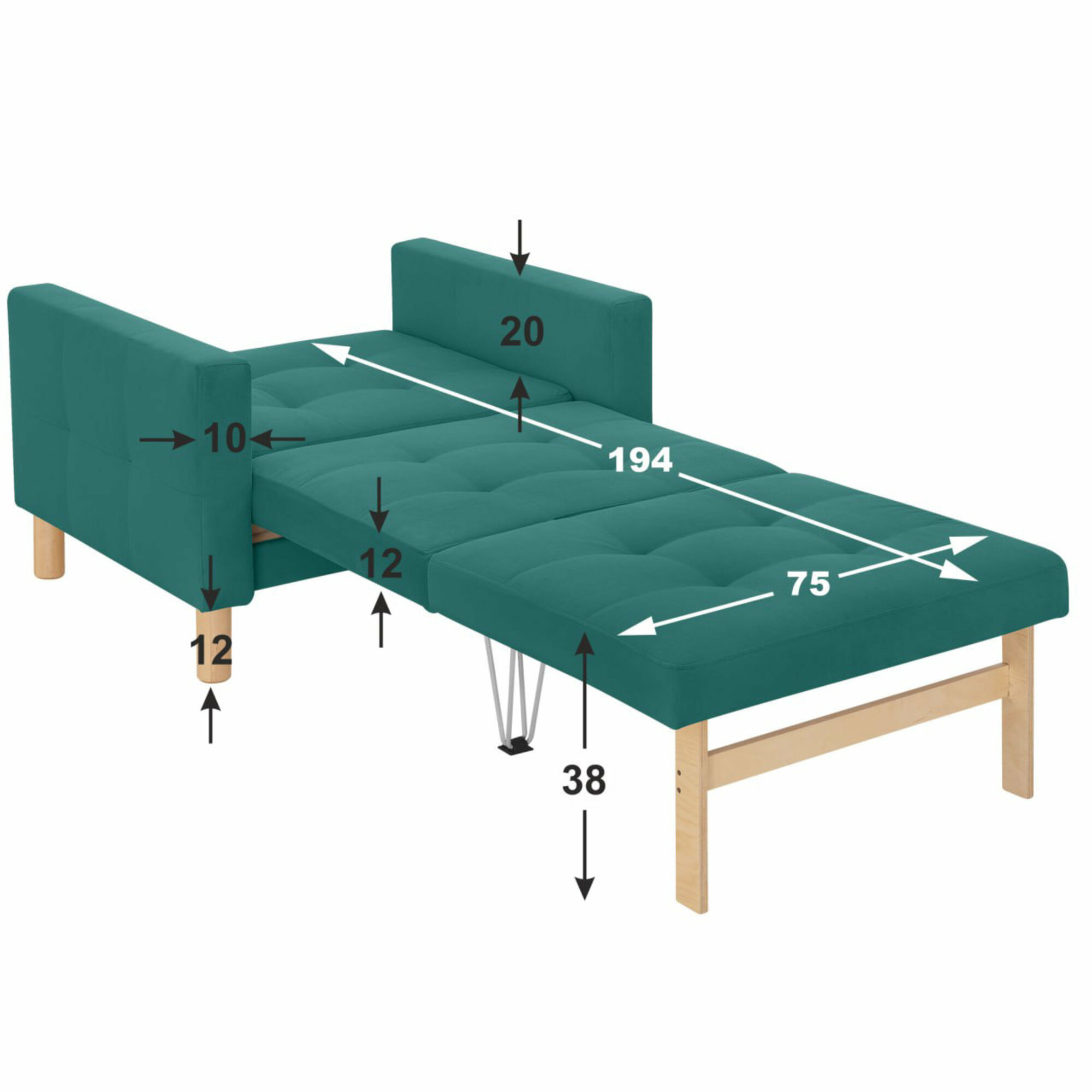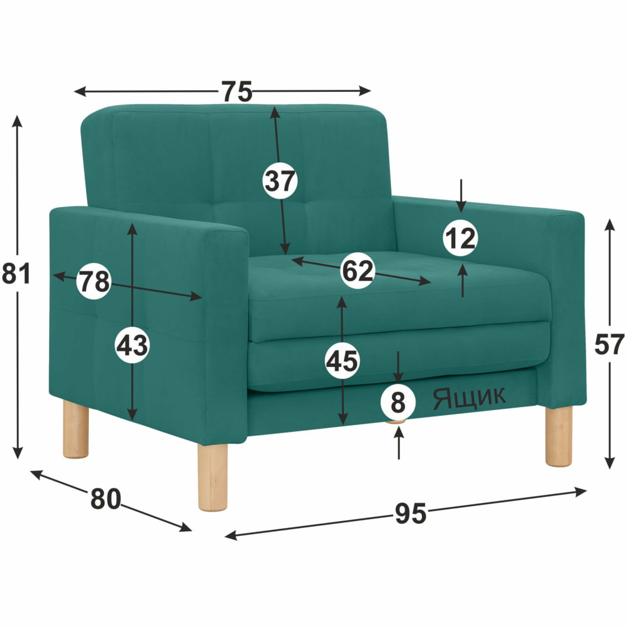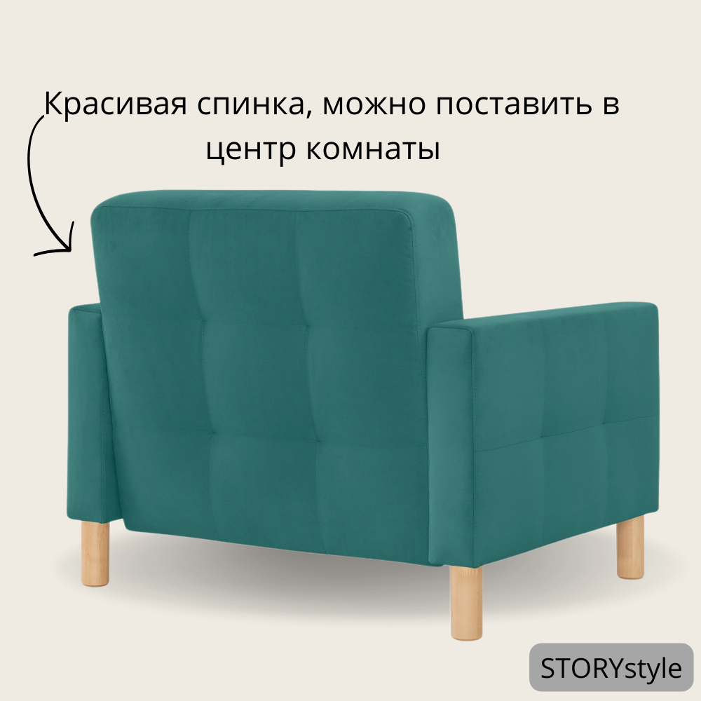Кресло-кровать Монро, 95*80*81, спальное 75*194, велюр бирюзовый, Велутто 71