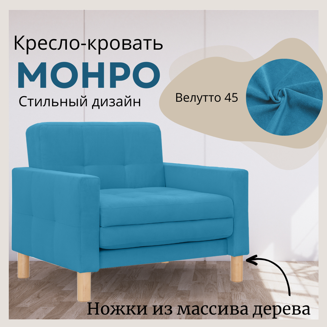 Кресло-кровать Монро, 95*80*81, спальное 75*194, велюр лазурный, Велутто 20