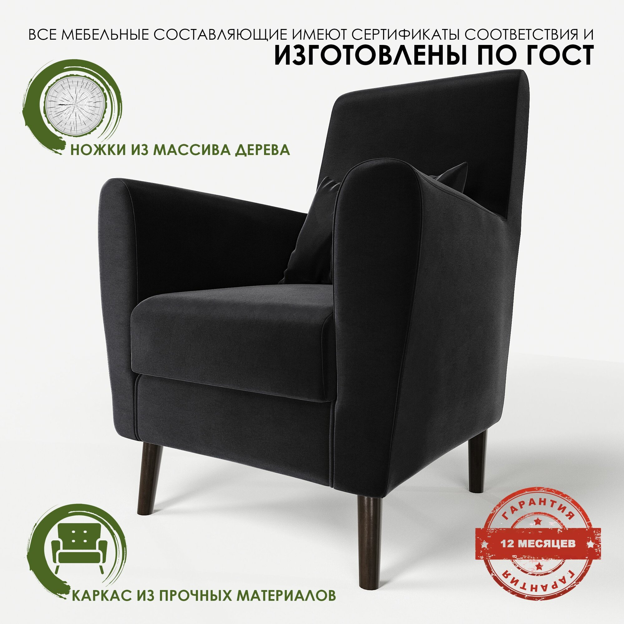Кресло мягкое Грэйс D-12 (черный) на высоких ножках с подлокотниками в гостиную, офис, зону ожидания, салон красоты.