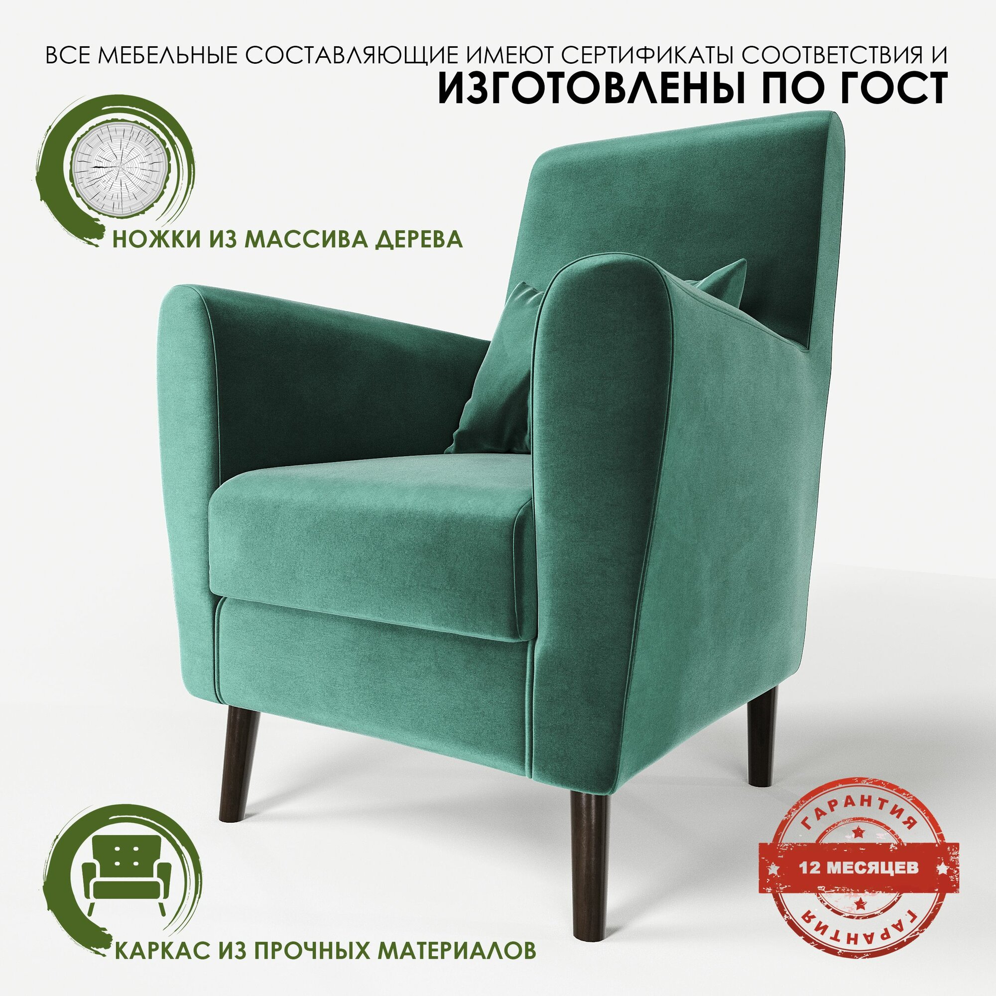 Кресло мягкое Грэйс D-7 (зеленый) на высоких ножках с подлокотниками в гостиную, офис, зону ожидания, салон красоты.