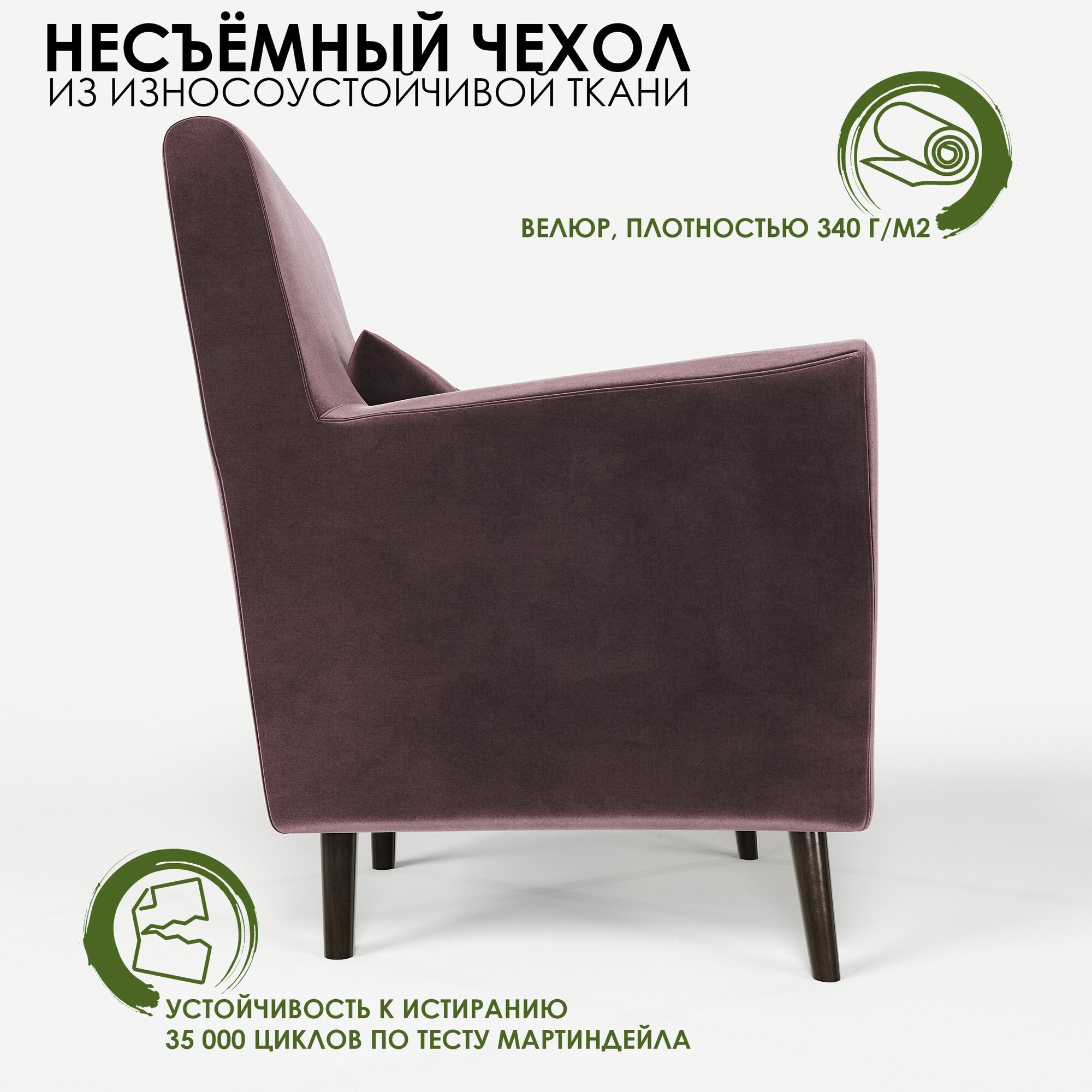 Кресло мягкое Грэйс D-9 (фиолетовый) на высоких ножках с подлокотниками в гостиную, офис, зону ожидания, салон красоты.