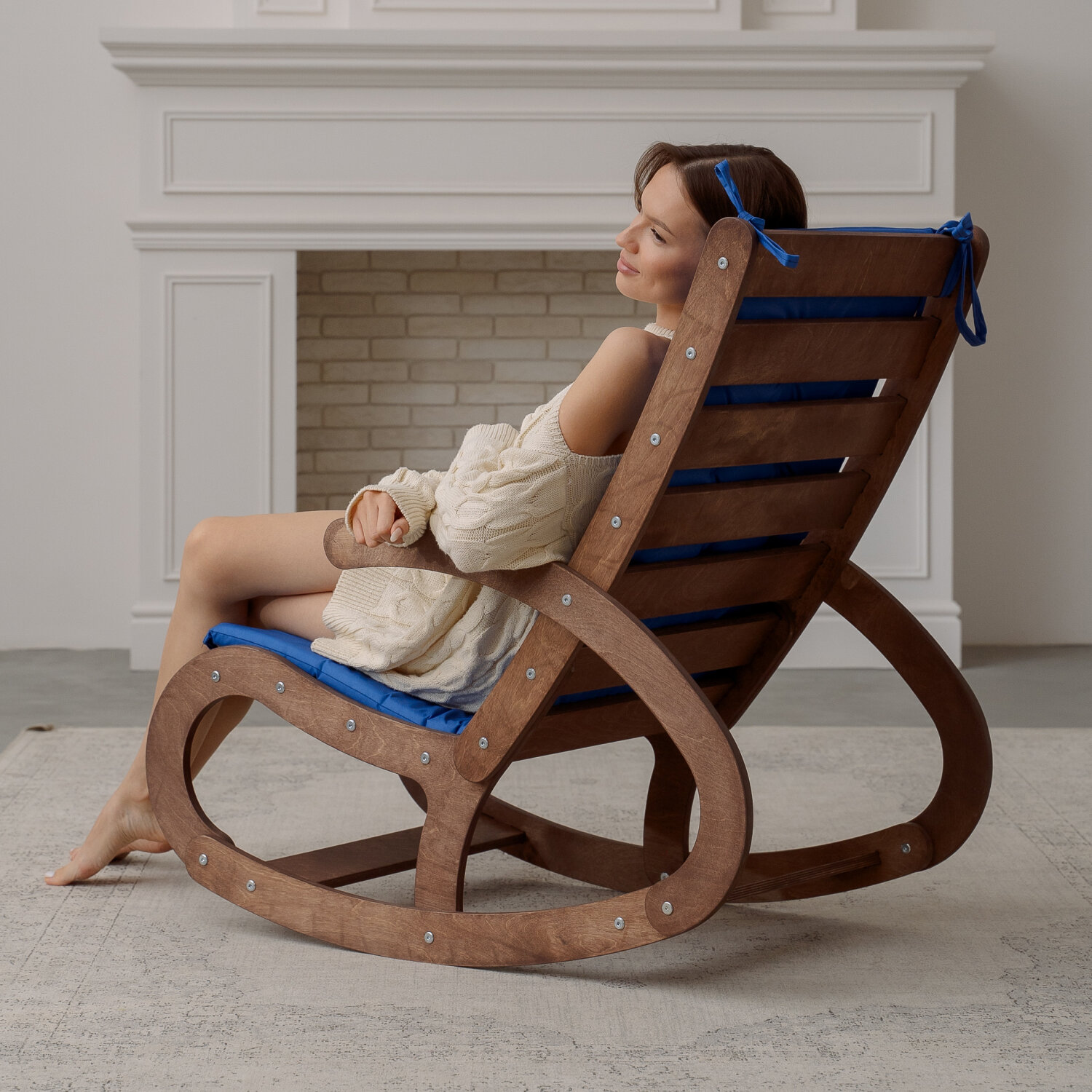 СохранитьКресло качалка взрослое для сада и дачи венге с синей подушкой интересное: