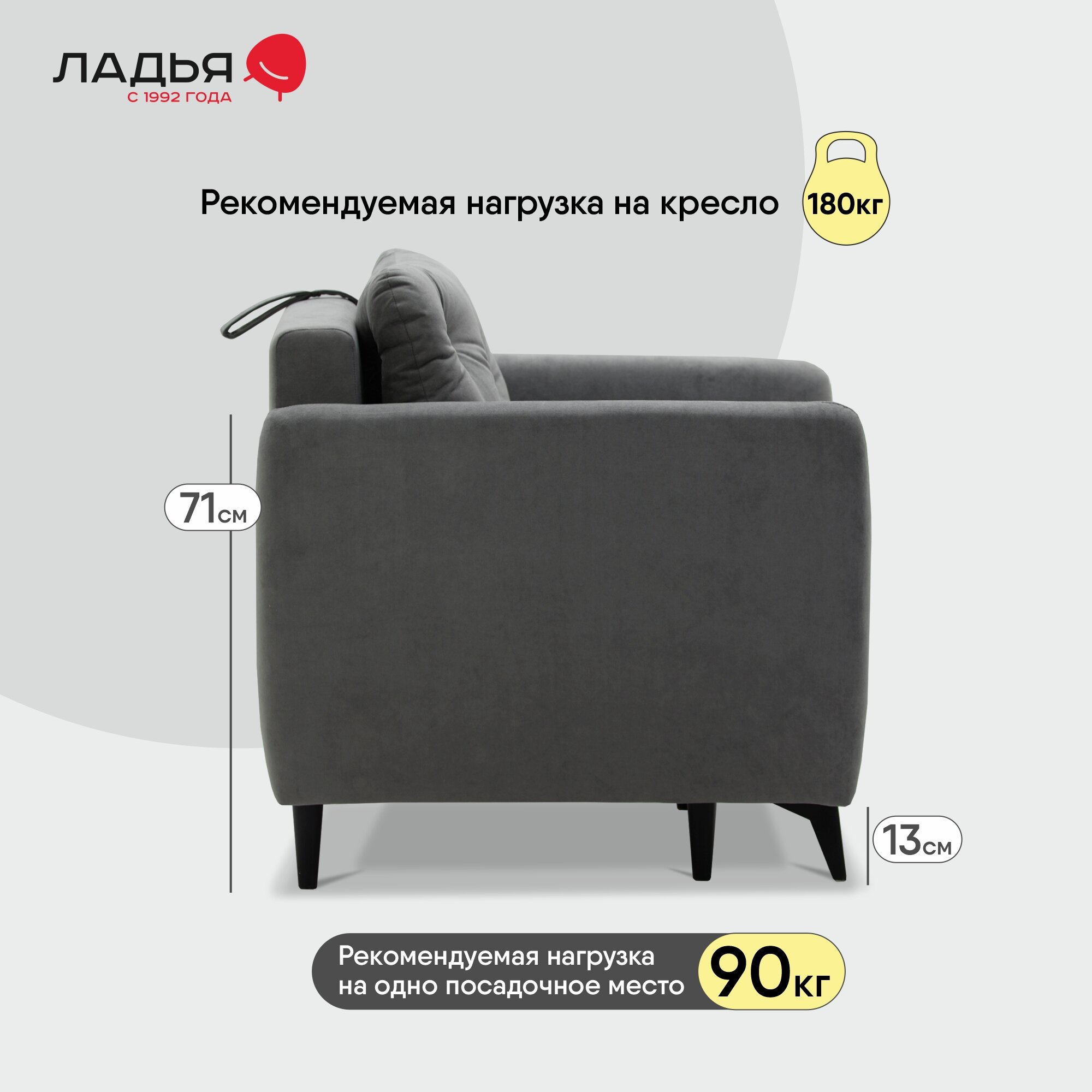 Кресло-кровать Тиволи 100х89х89 см, спальное место: 190х70 см, Ultra Grey интересное: