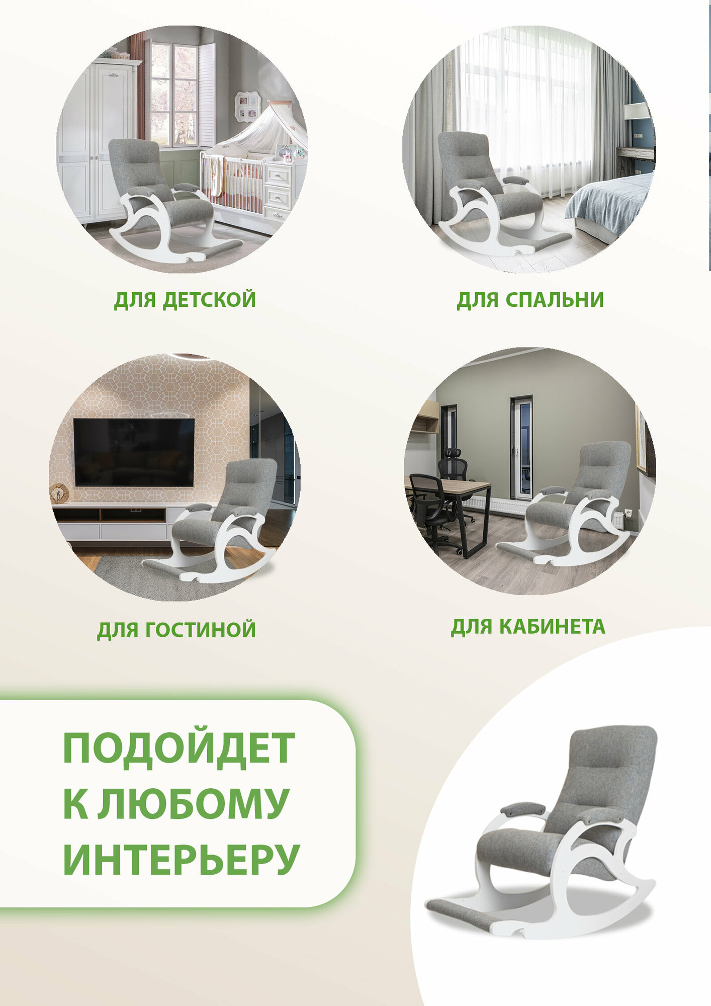 | Комплектация | Кресло-качалка - 1шт, инструкция по сборке, комплект фурнитуры |