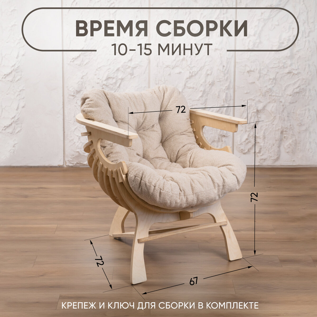 Купить Кресло Ракушка для отдыха букле бежевый + светлый дуб