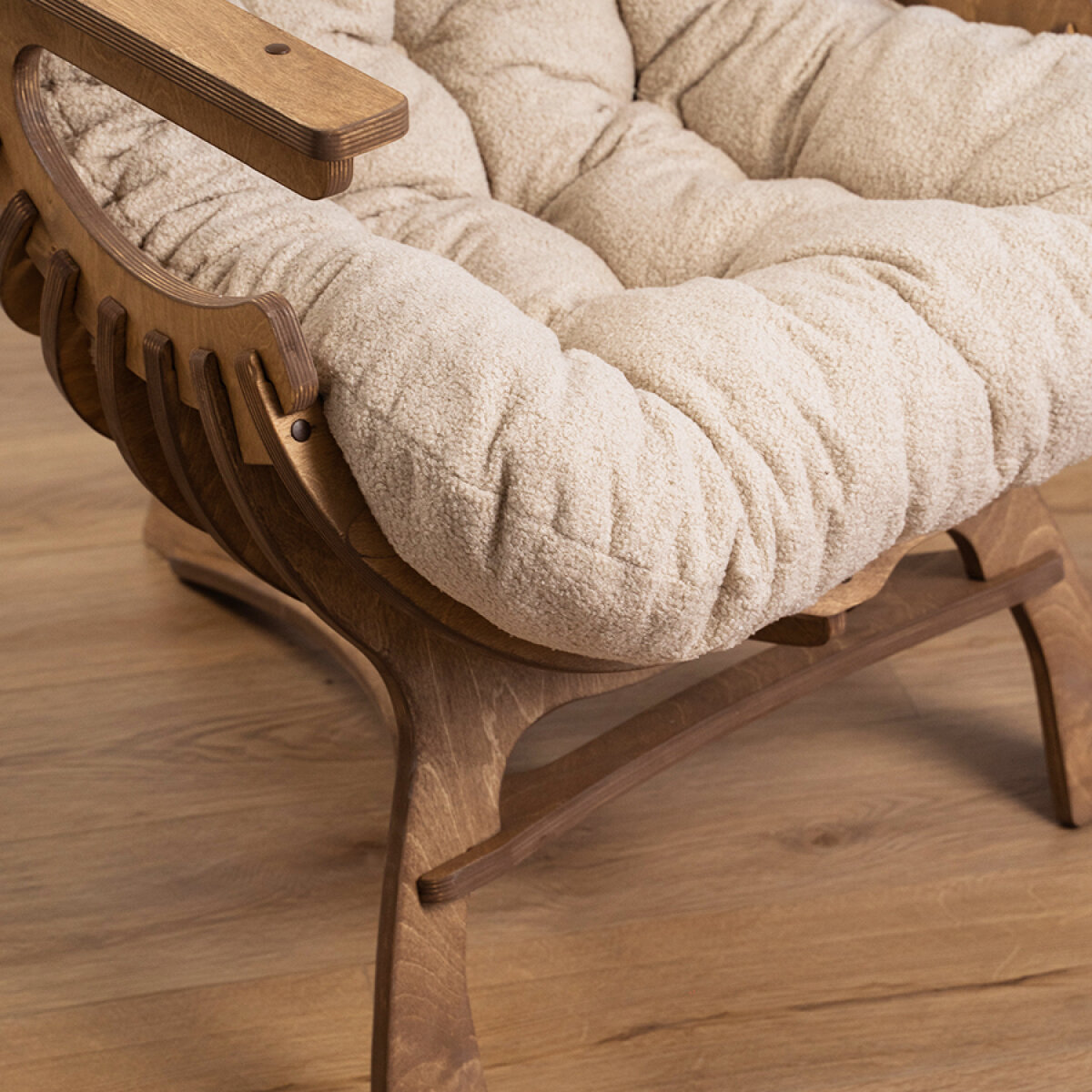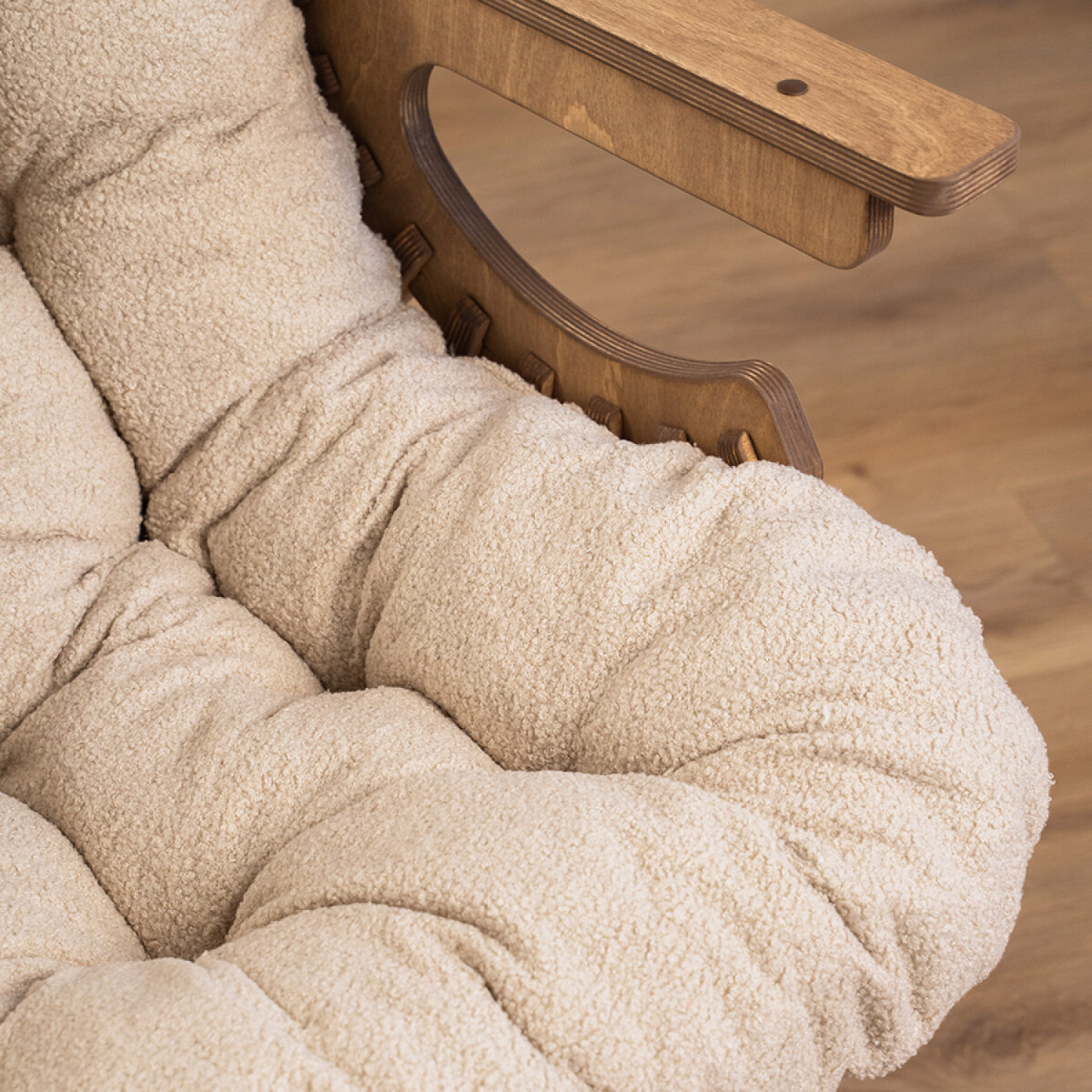 Кресло Ракушка для отдыха букле бежевый + светлый дуб