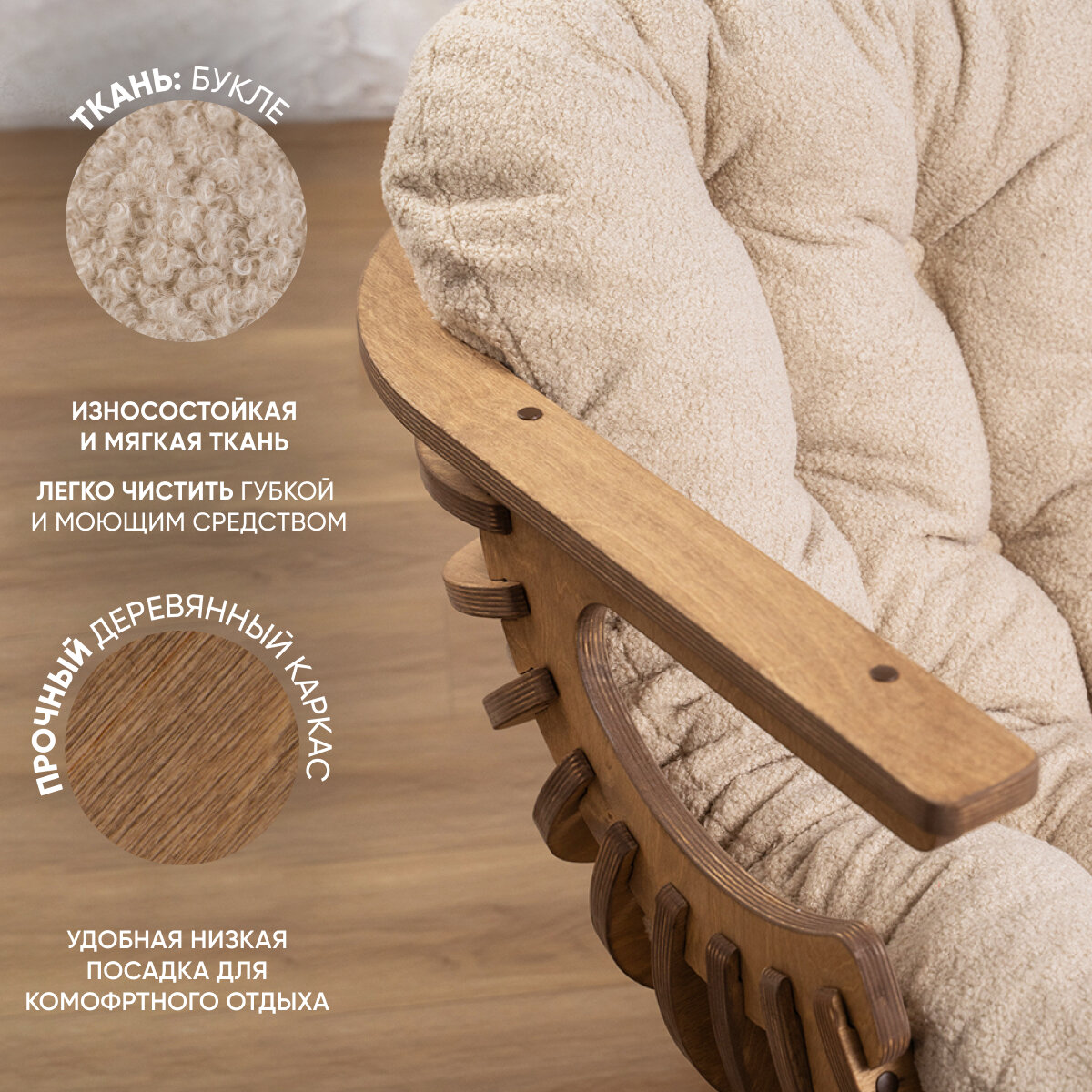 СохранитьКресло Ракушка для отдыха букле бежевый + дуб интересное: