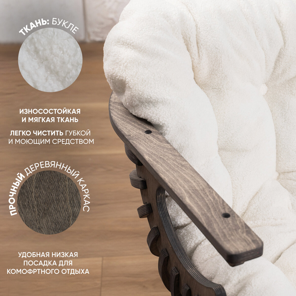 Купить Кресло Ракушка для отдыха букле белый + темный дуб