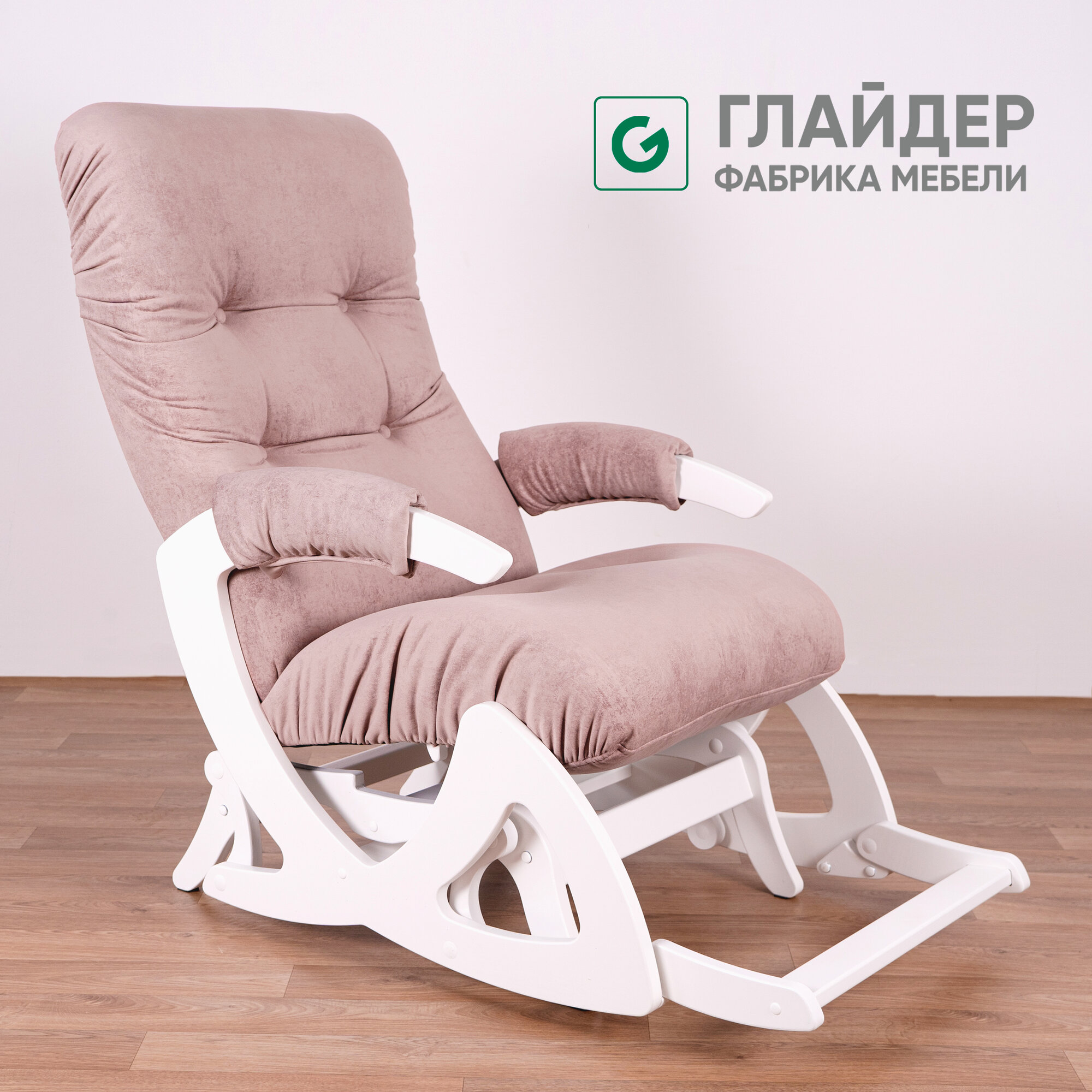Купить Кресло-качалка для дома и дачи с подножкой, мятниковый механизм Glider Балтик в ткани Микровелюр, цвет розовый