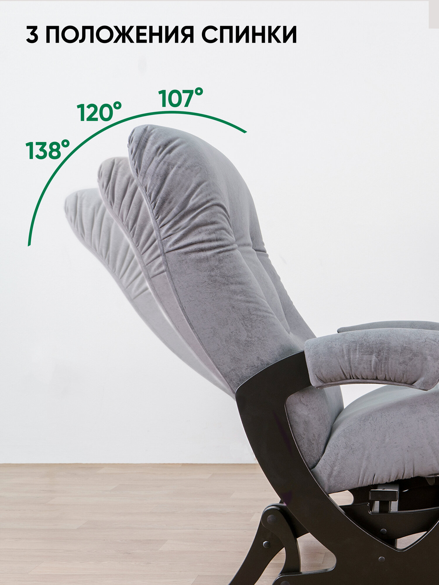 Купить Кресло-качалка для дома и дачи с подножкой, мятниковый механизм Glider Балтик в ткани Микровелюр, цвет серый