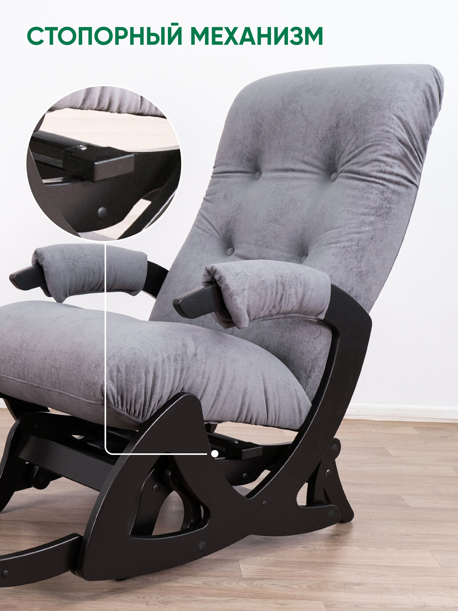 СохранитьКресло-качалка для дома и дачи с подножкой, мятниковый механизм Glider Балтик в ткани Микровелюр, цвет серый интересное: