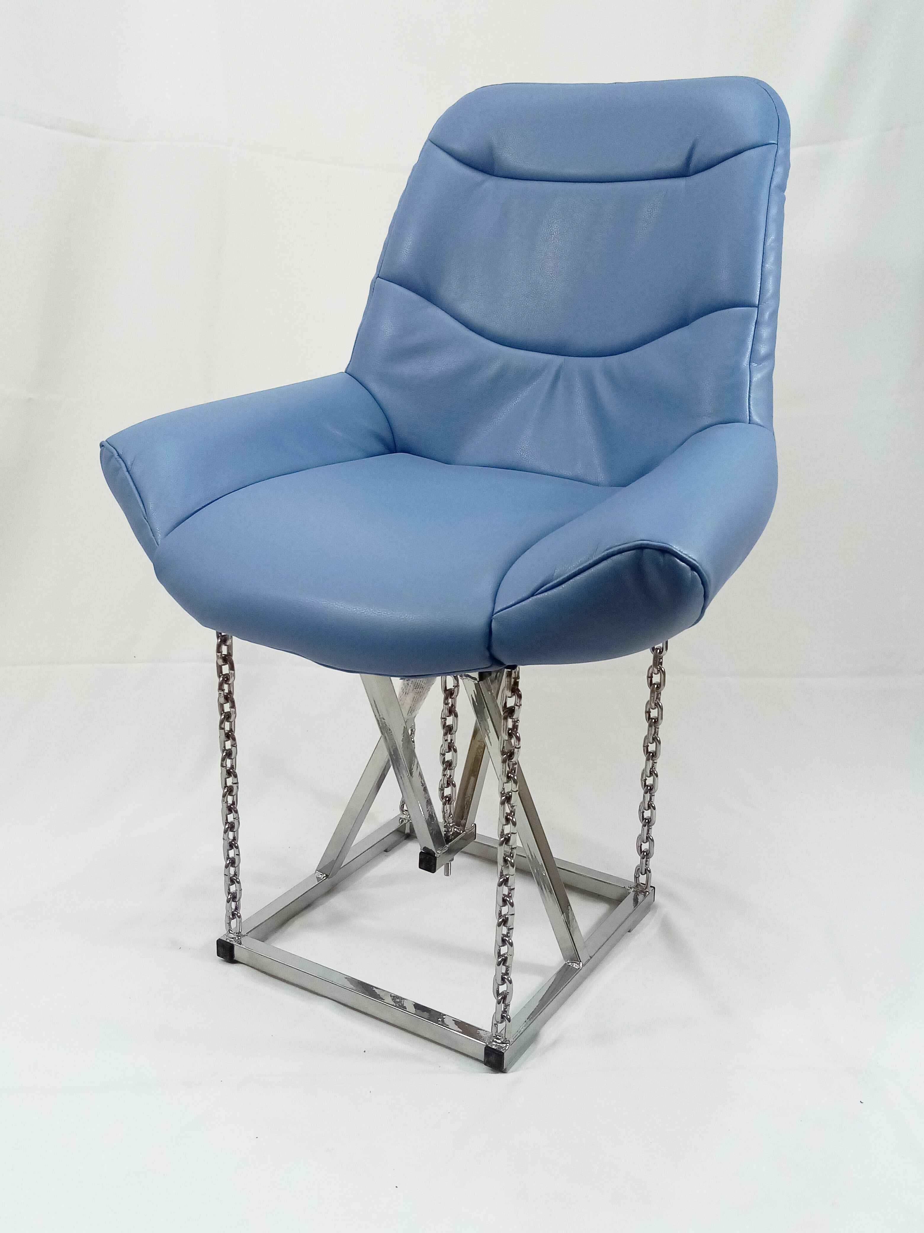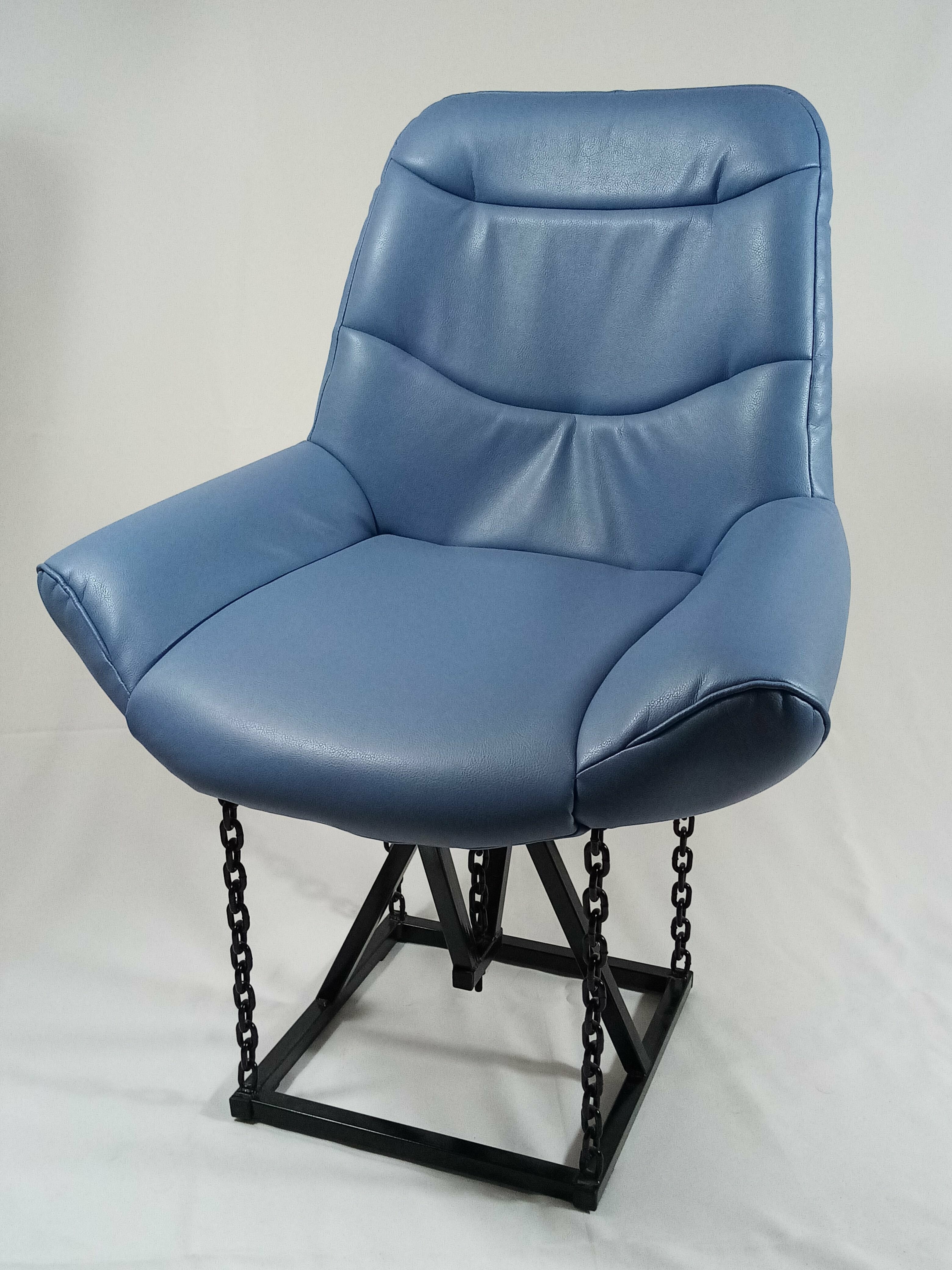 Кресло на цепях Лофт Grand, велюр голубой, каркас черный (высота сиденья 48 см)