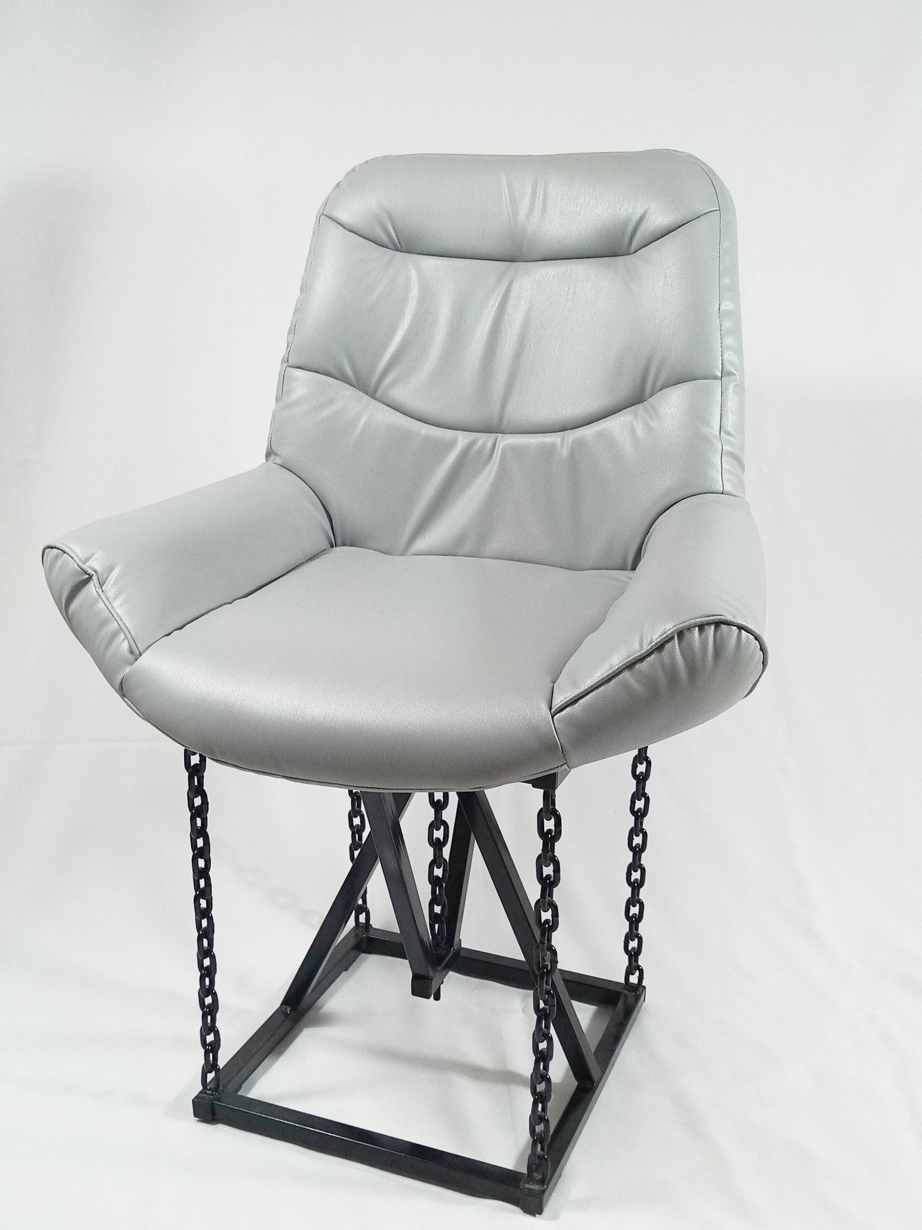 Кресло на цепях Лофт Grand, велюр стальной, каркас серый металлик (высота сиденья 48 см)