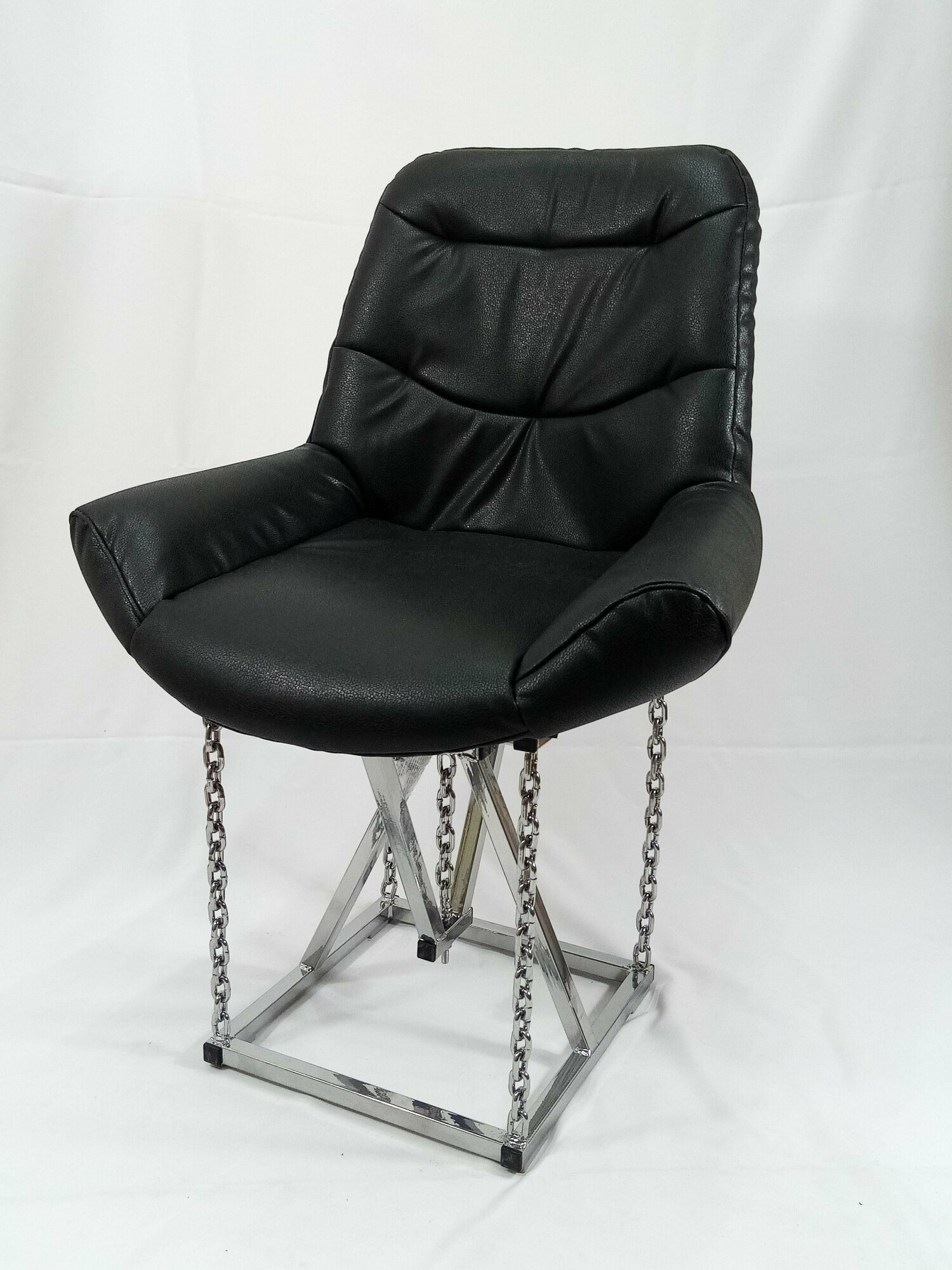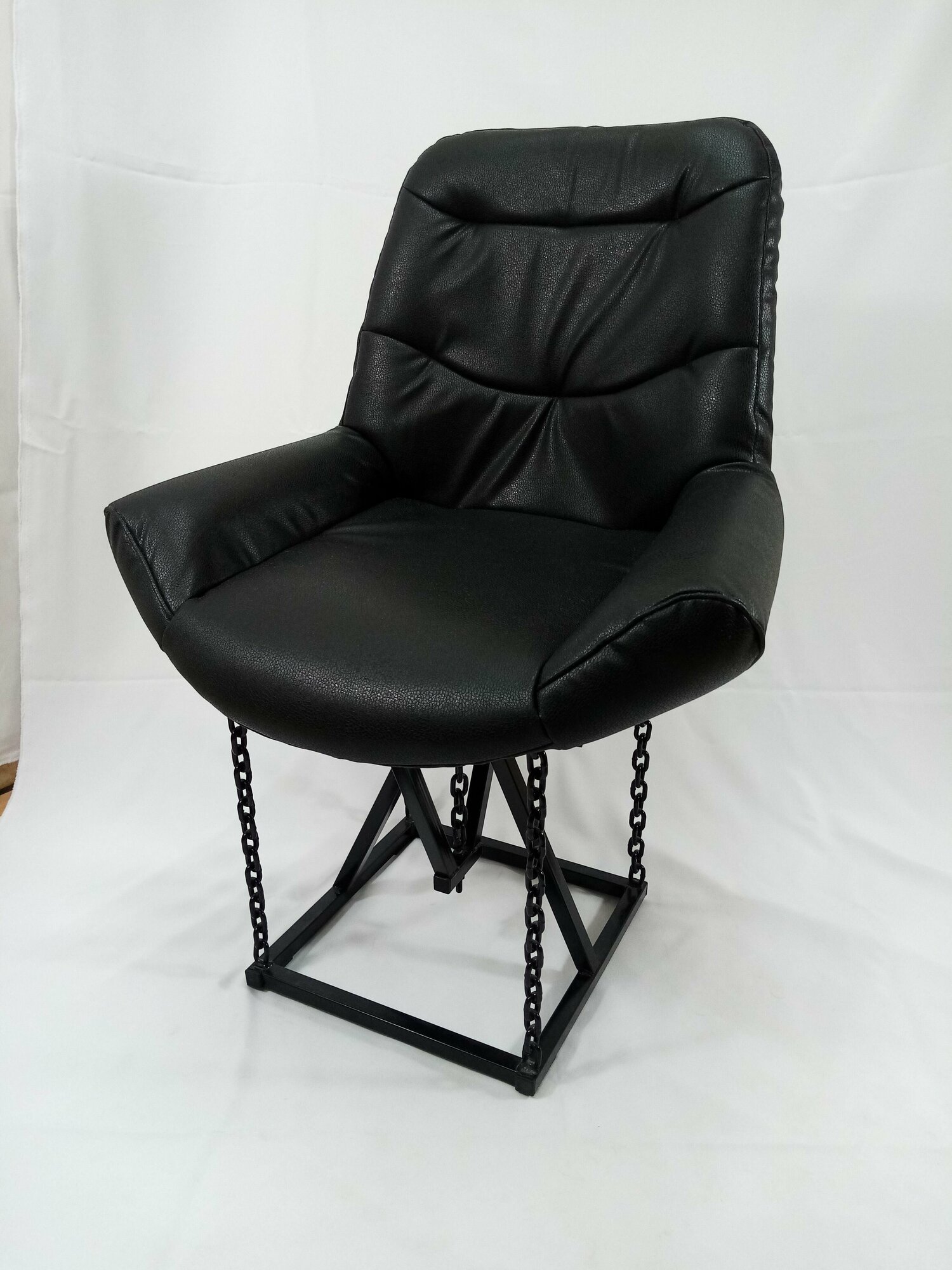 Кресло на цепях Лофт Grand, кожа черная, каркас черный (высота сиденья 48 см)