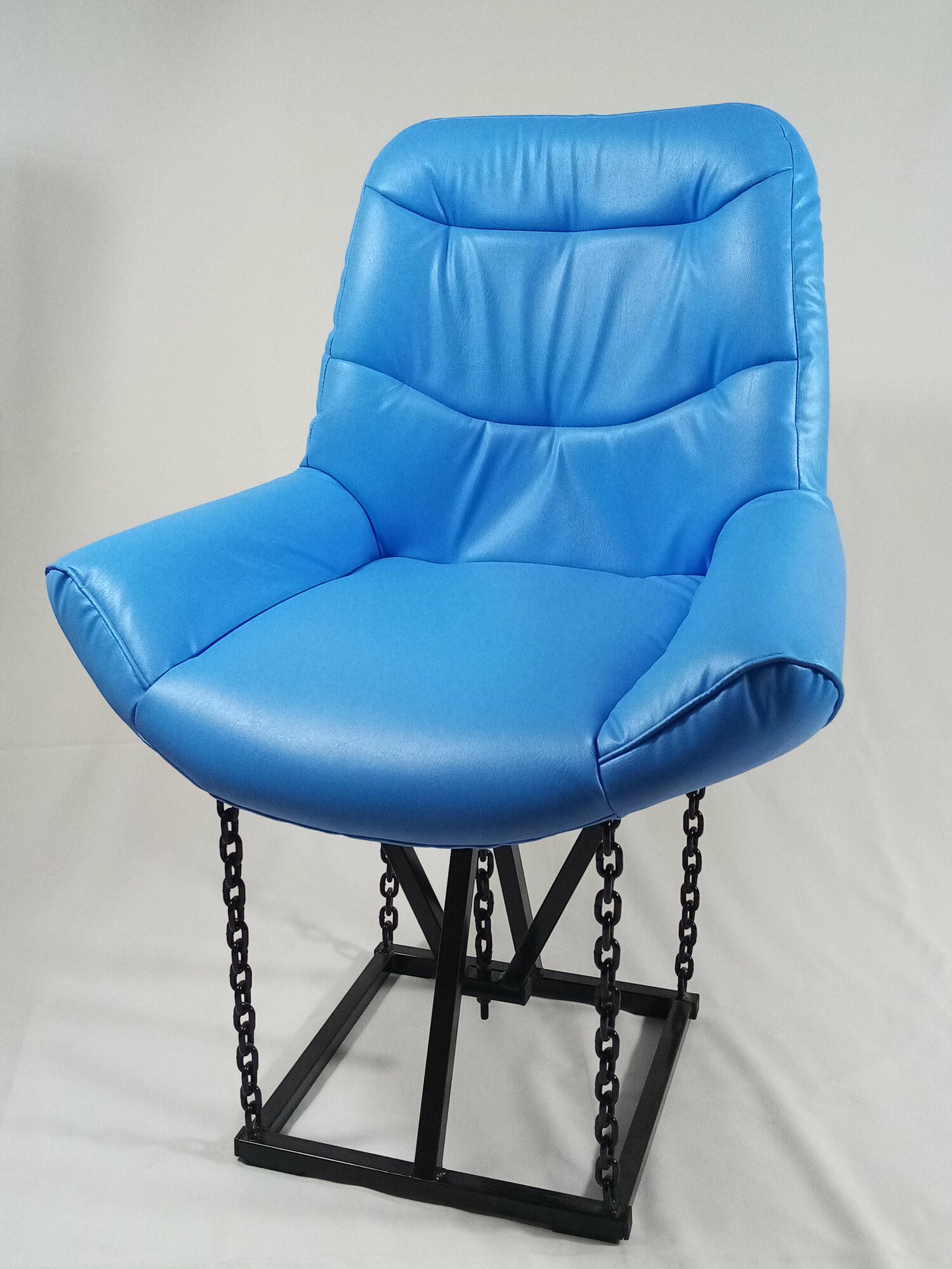 Купить Кресло на цепях Лофт Grand, велюр голубой, каркас черный (высота сиденья 48 см)