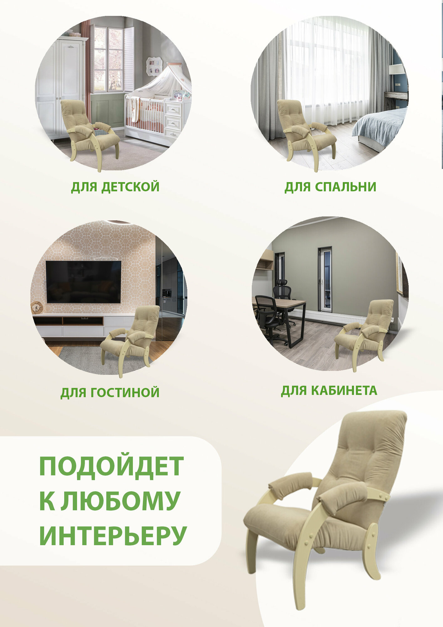 СохранитьКресло мягкое для отдыха, дома и дачи Glider 61 с мягкими подлокотниками, цвет бежевый интересное: