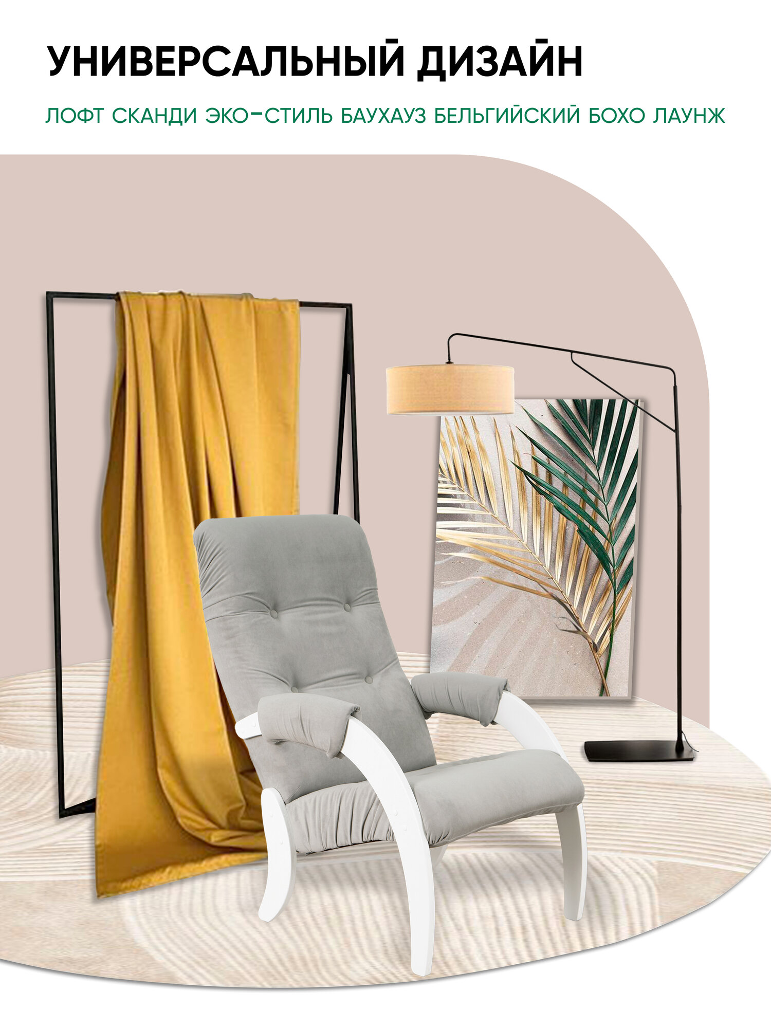 Купить Кресло мягкое для отдыха, дома и дачи Glider 61 с мягкими подлокотниками, цвет серый/белый
